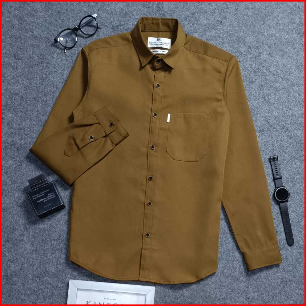 Detak Original Kemeja Polos Pria Lengan Panjang Twill Mocca