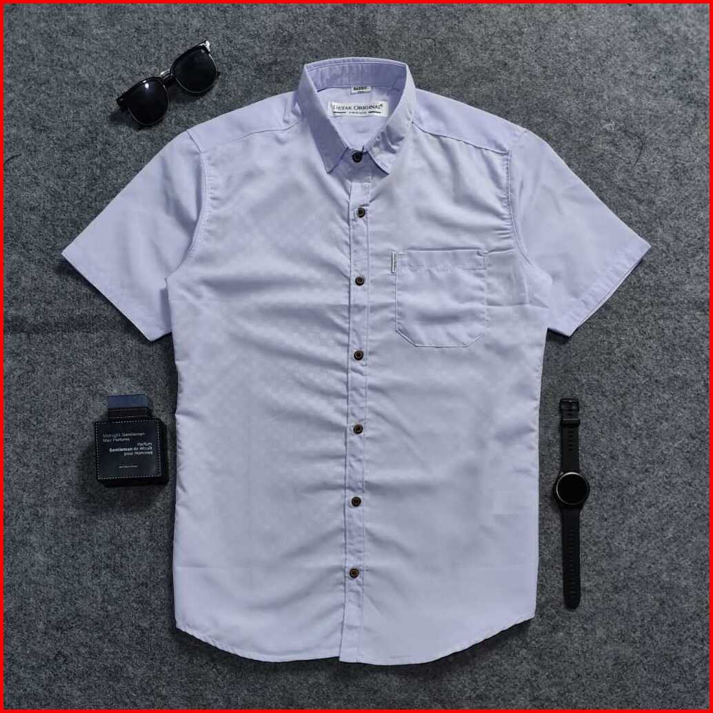 Detak Original Kemeja Embos Sultan Pria Lengan Pendek Putih Chessboard Casual Slimfit