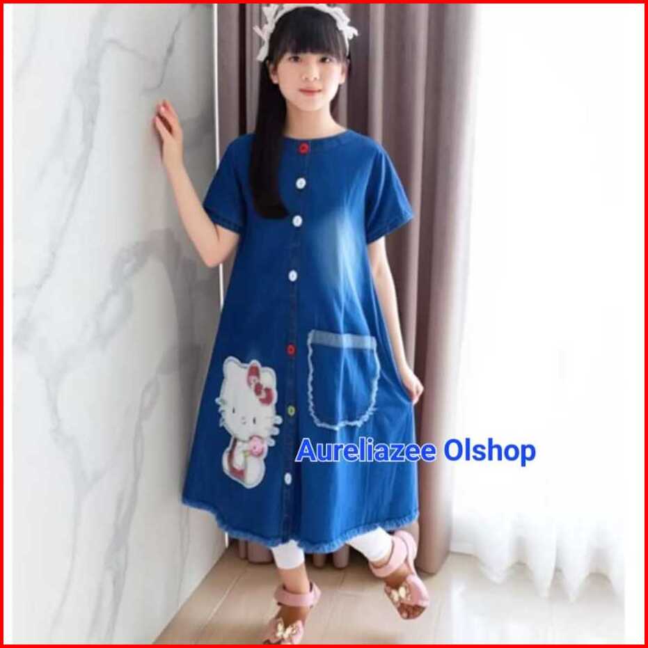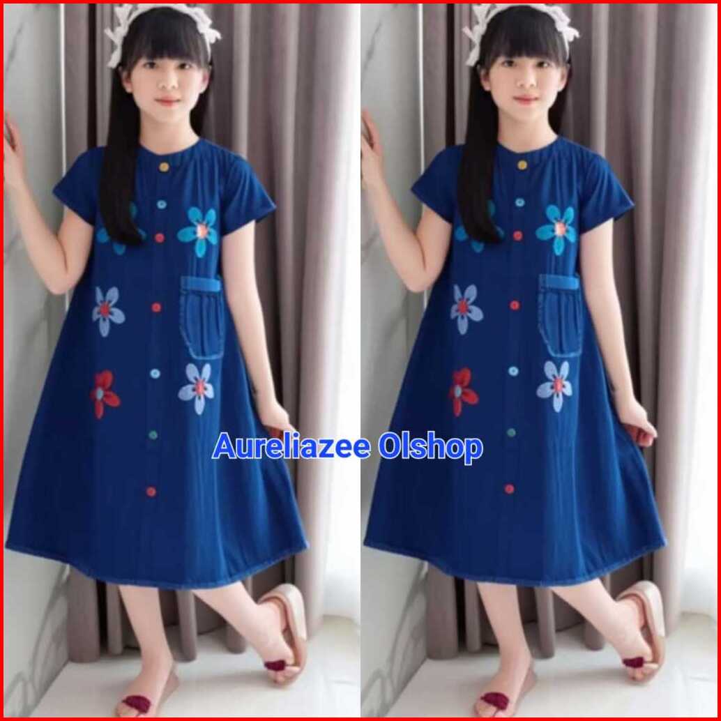 Dress Jeans Anak Motif Melati Bunga-bunga 1-12thn