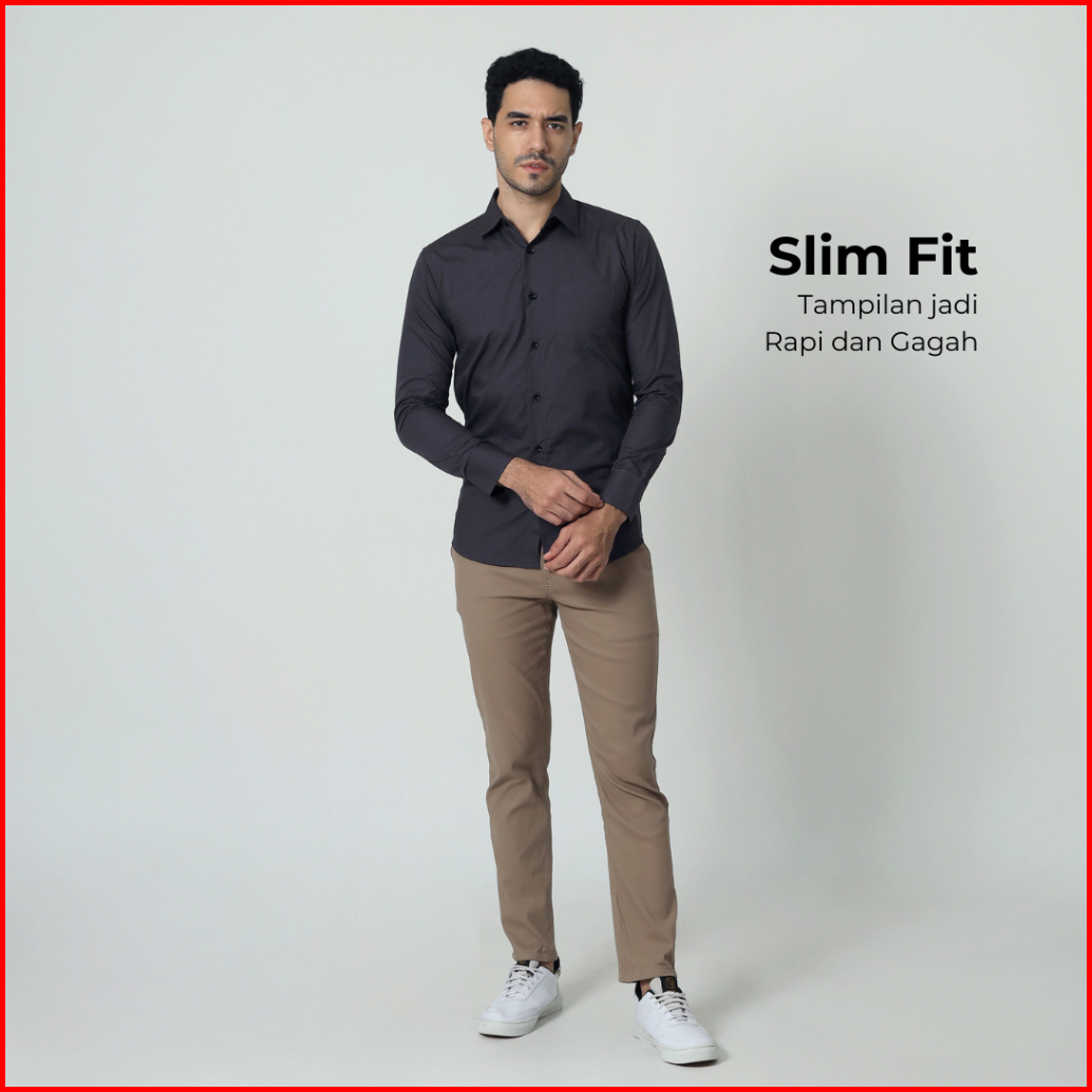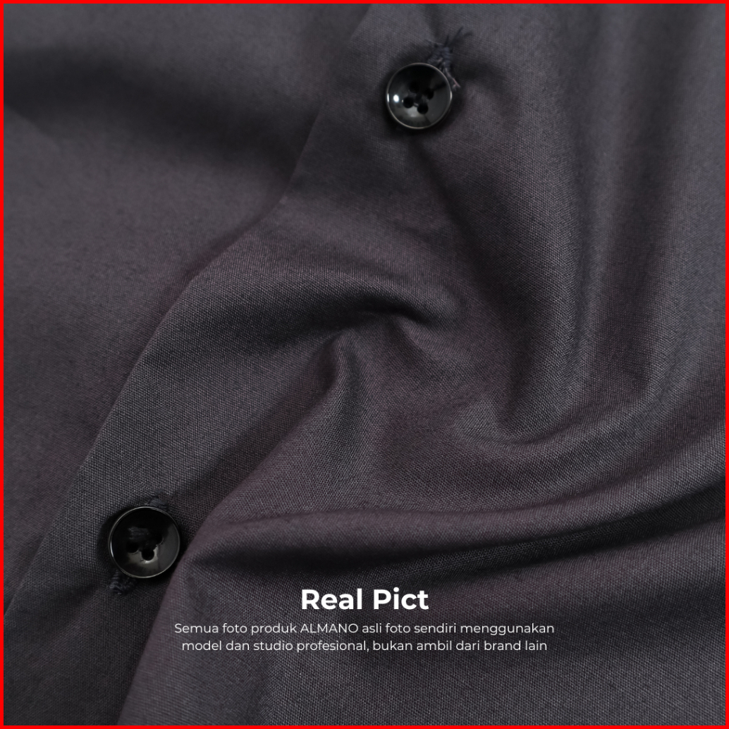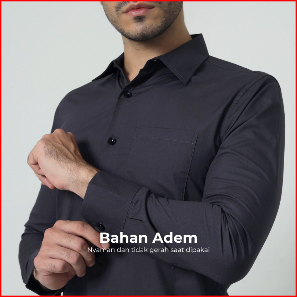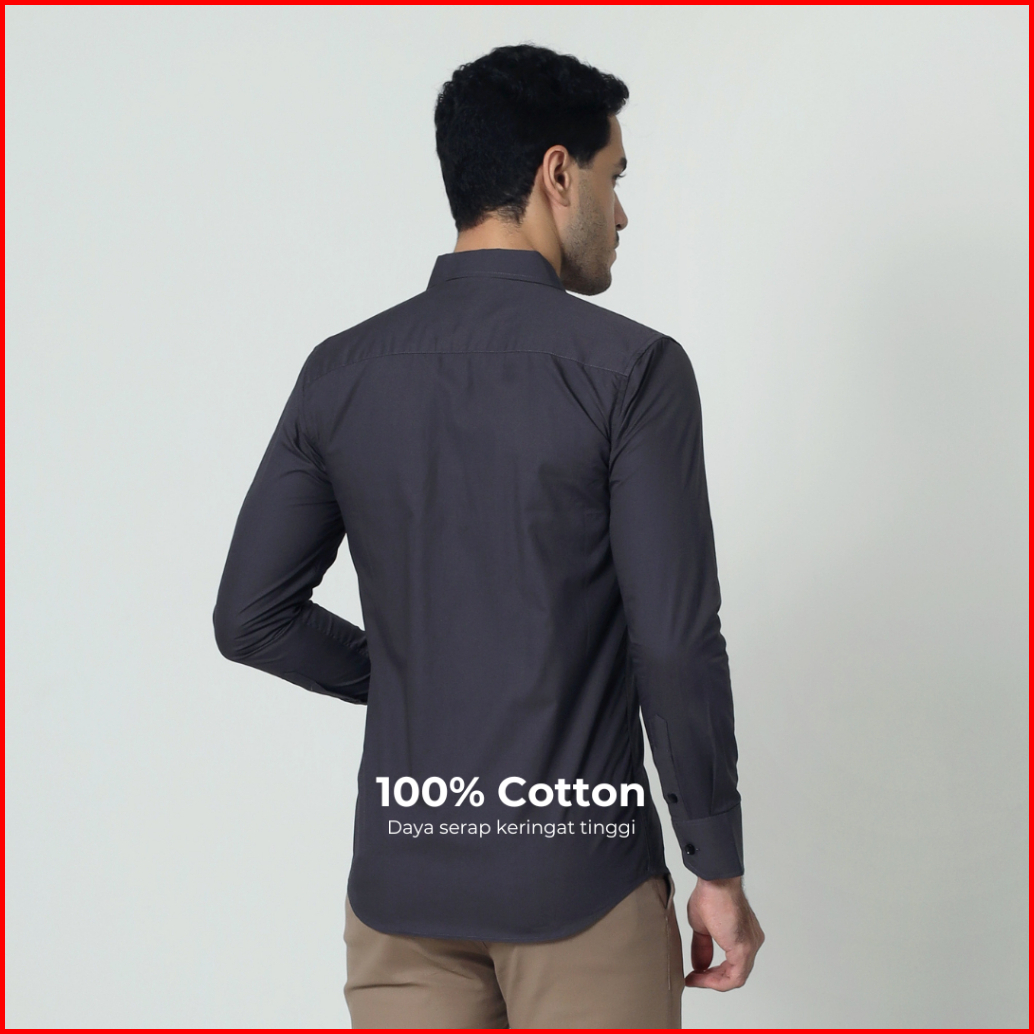 Almano Devin Shirt Ls Dark Grey Kemeja Pria Slim Fit Polos Panjang Katun Abu Tua