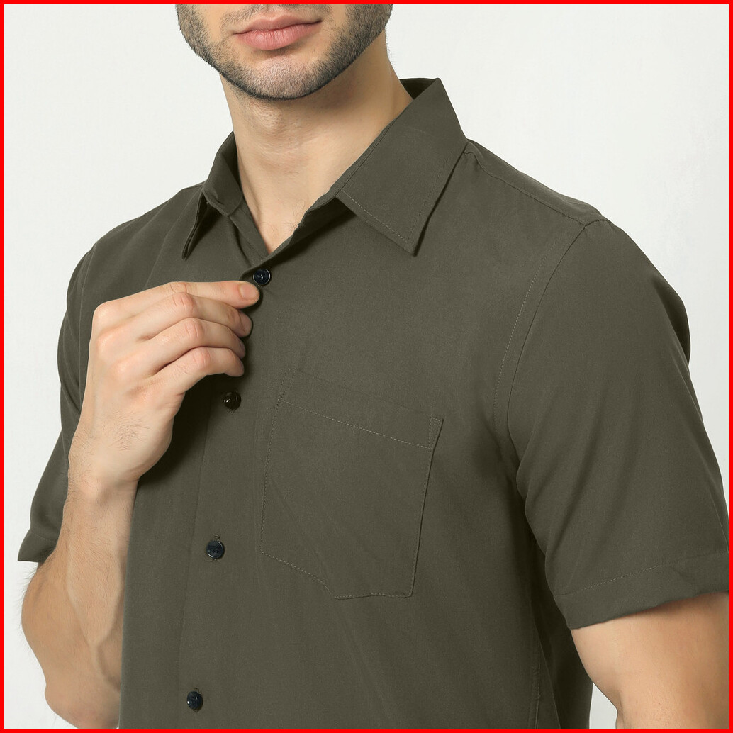 Almano Eston Shirt Ss Olive Kemeja Pria Slim Fit Polos Pendek Hijau Tua