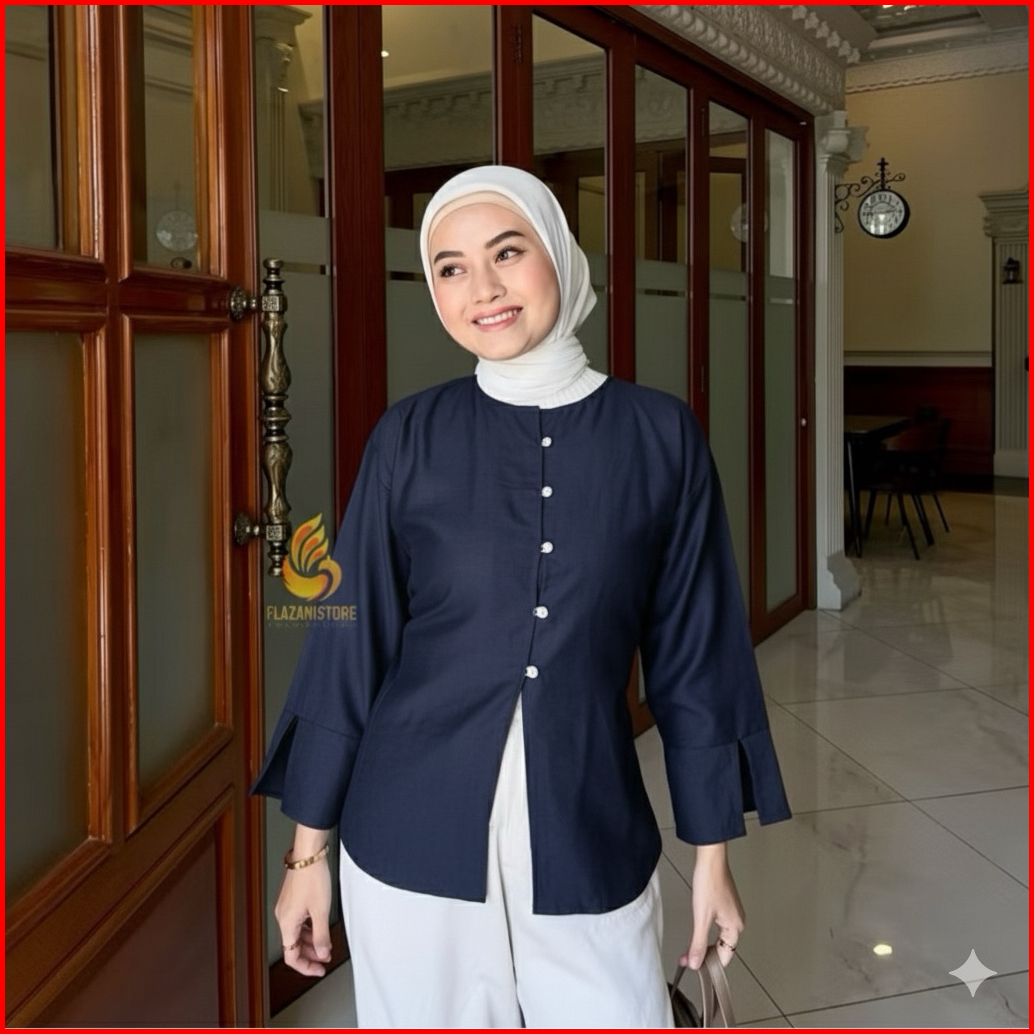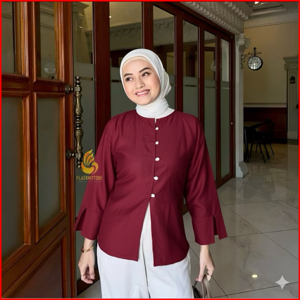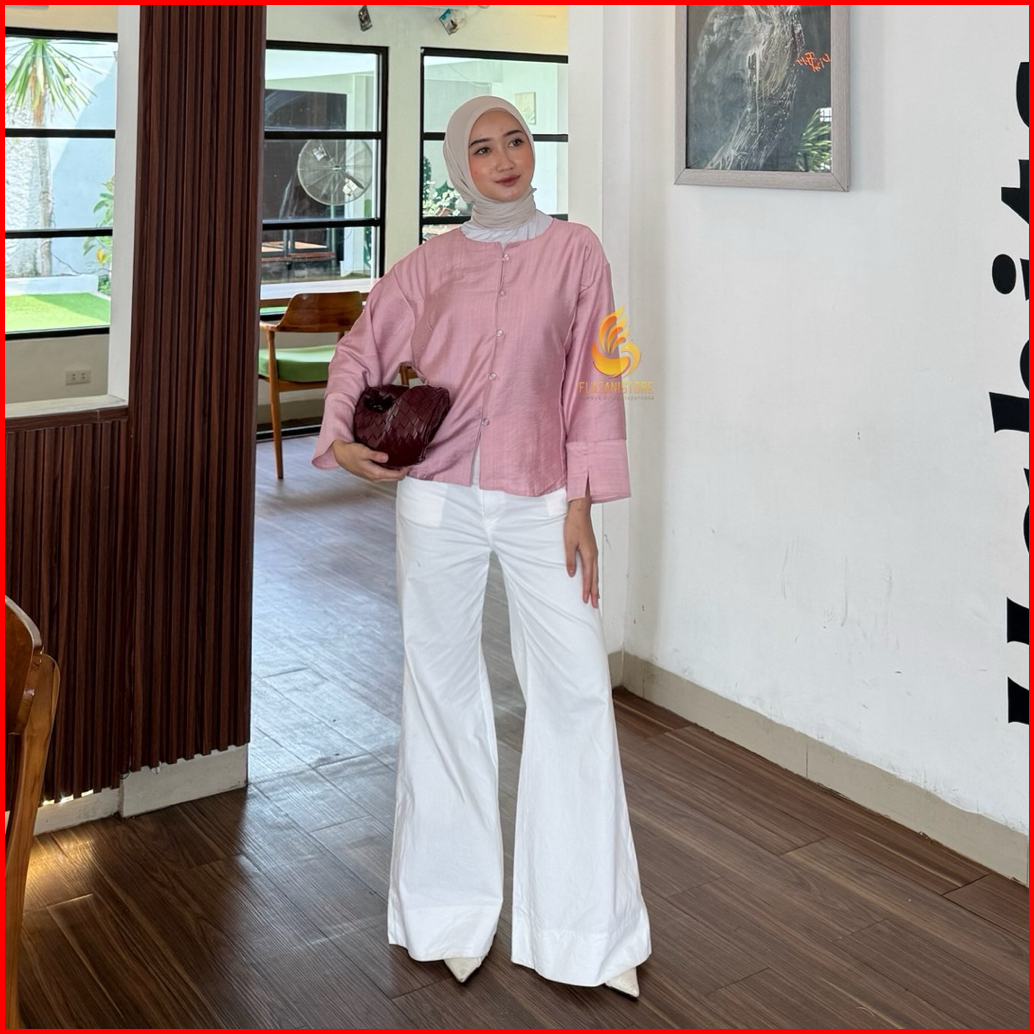 Zani - Tyla Blouse Atasan Wanita Kemeja Crop Linen Jumbo Kancing Simple