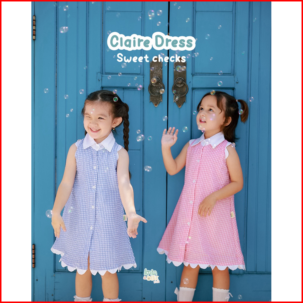 Kalaollie Claire Dress Shirt Dress Kotak-kotak Bayi Anak Dress Kasual Anak Perempuan