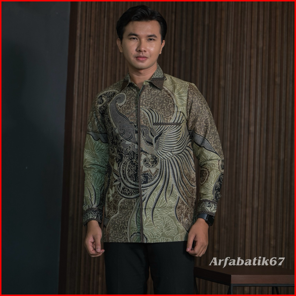 Kemeja Batik Smock Bordir Pria Katun Prima Premium Lengan Panjang Lapis Full Furing Trikot Wafle Full Sampai Lengan Limi