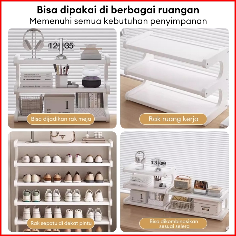 Rak Sepatu Melengkung Rak Sepatu Kayu Multi-lapis Rak Sepatu Berkapasitas Besar Sederhana
