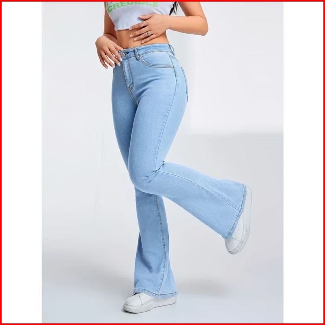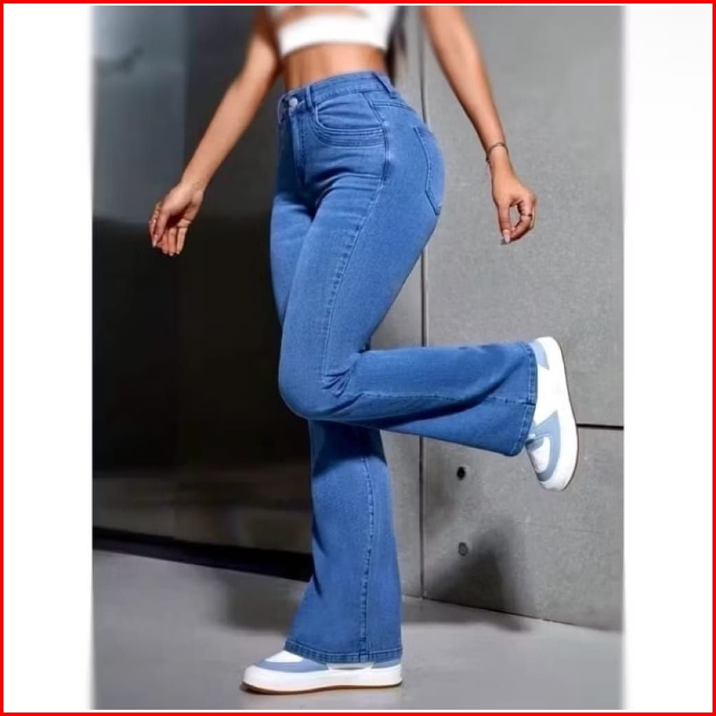 Hw Jeans Cutbray Wanita Retro Kekinian Bahan Stretch Tebal