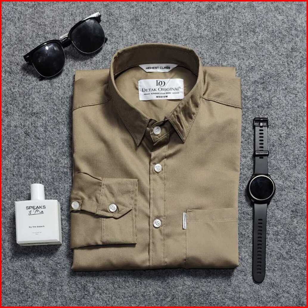 Detak Original Kemeja Polos Twill Premium Lengan Panjang Mocca Casual Slimfit