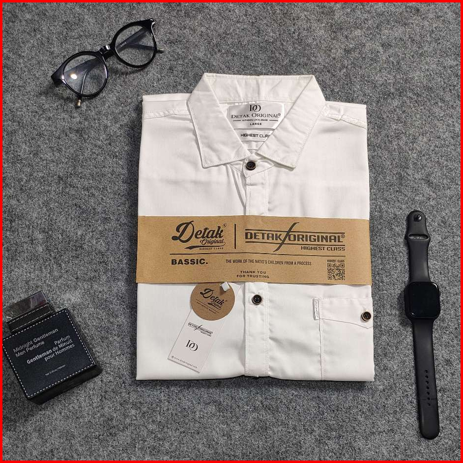 Detak Original Kemeja Polos Pria Lengan Pendek Putih Slim Fit Kasual