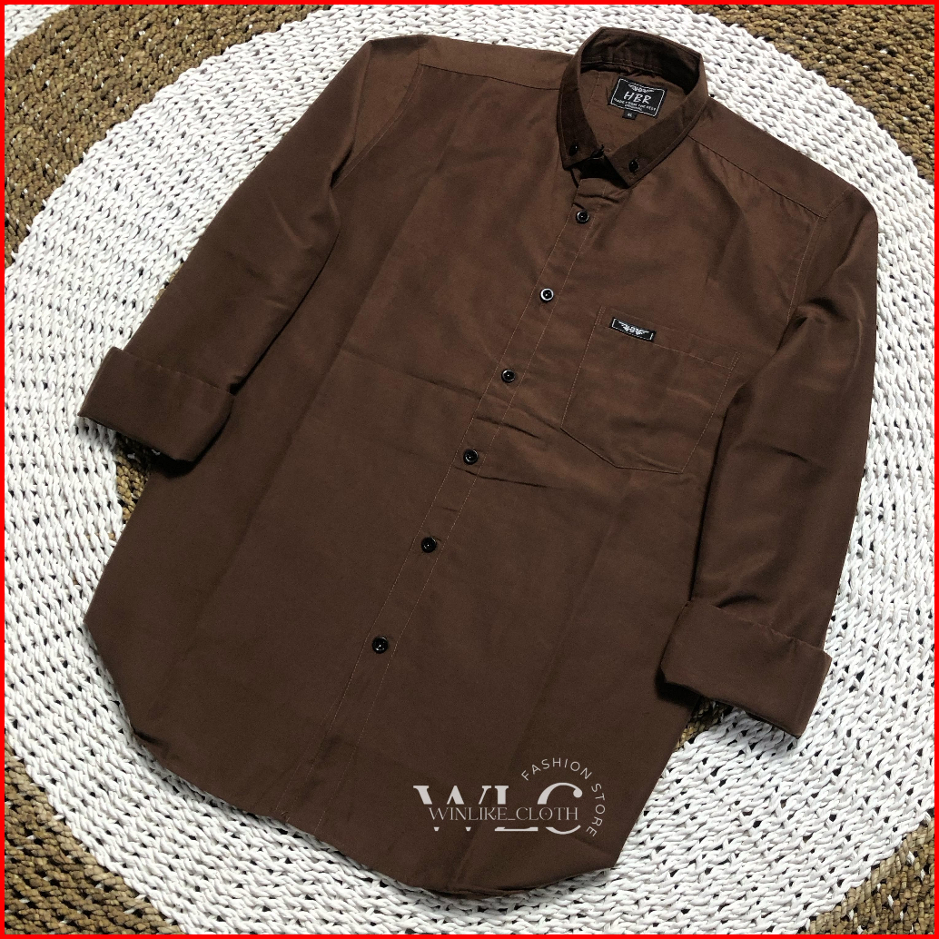 Kemeja Polos Panjang Pria Polos Katun Santai Warna Mahogani Size M L Xl Xxl Mahogany