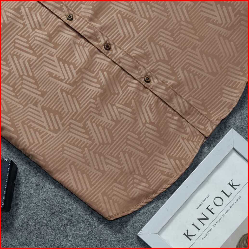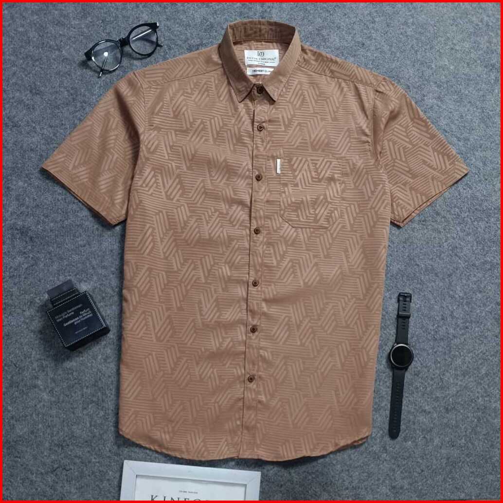 Detak Original Kemeja Embos Pria Lengan Pendek Motif Puzzle Mocca