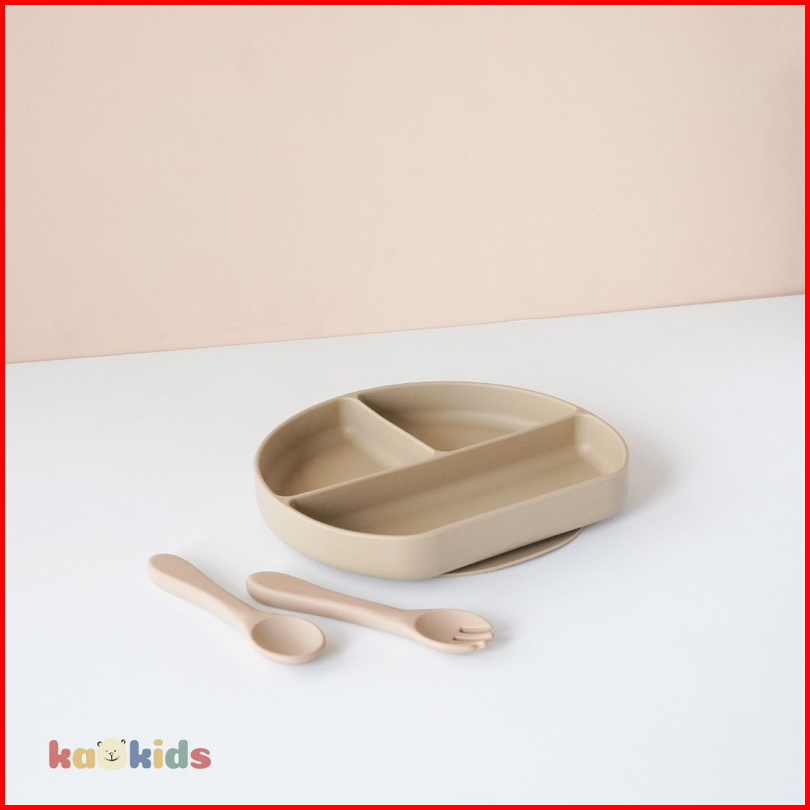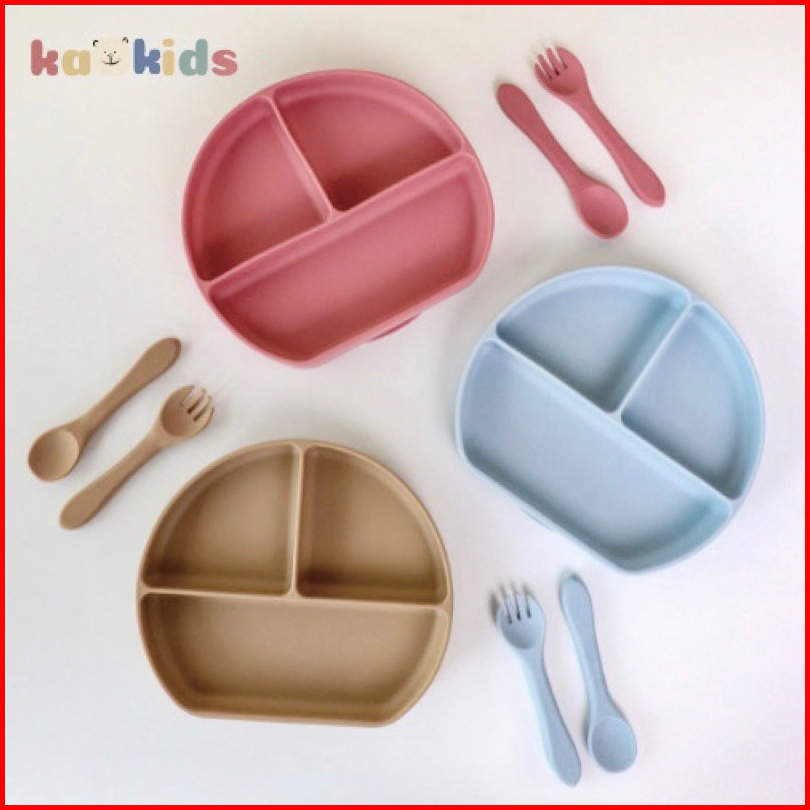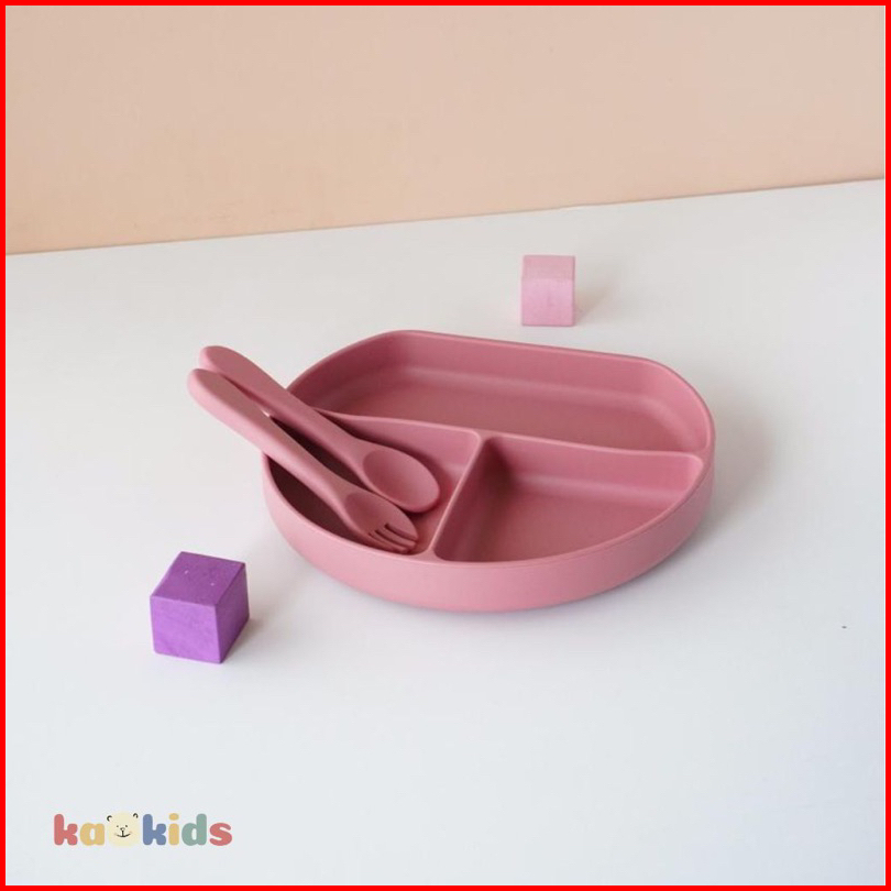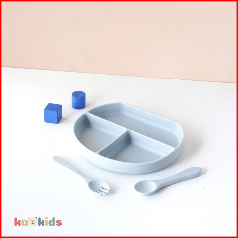Kaokids Kids Silicone Divider Plate Set Piring Makan Sekat Set Mpasi Silikon Anak Bayi