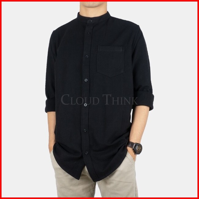 Loku Kemeja Pria Lengan Panjang Cotton Pique Kerah Changi Shanghai Steel Blue