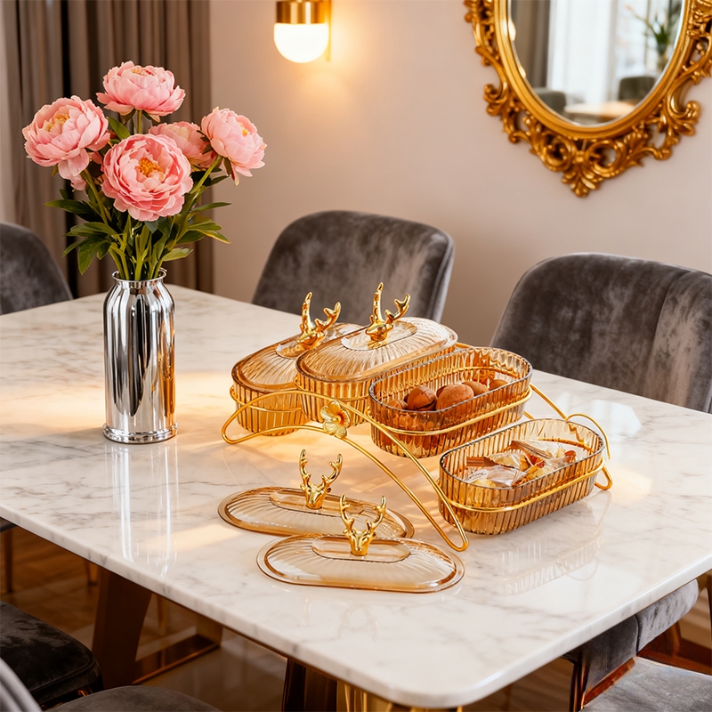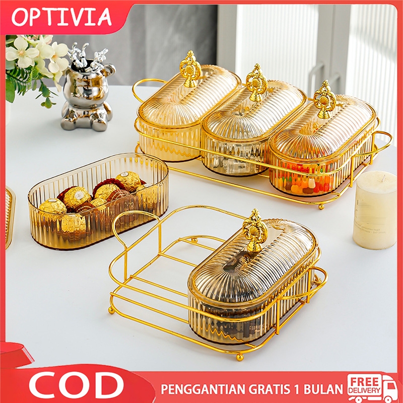 OPTIVIA Tingkat Tempat Buah Rangka Besi Baki dengan Tutup Toples Tempat Buah Snack Kopi Makanan Ringan Wadah Kotak, Toples Tempat Buah Snack Makanan Ringan Wadah Buah dengan Tatakan