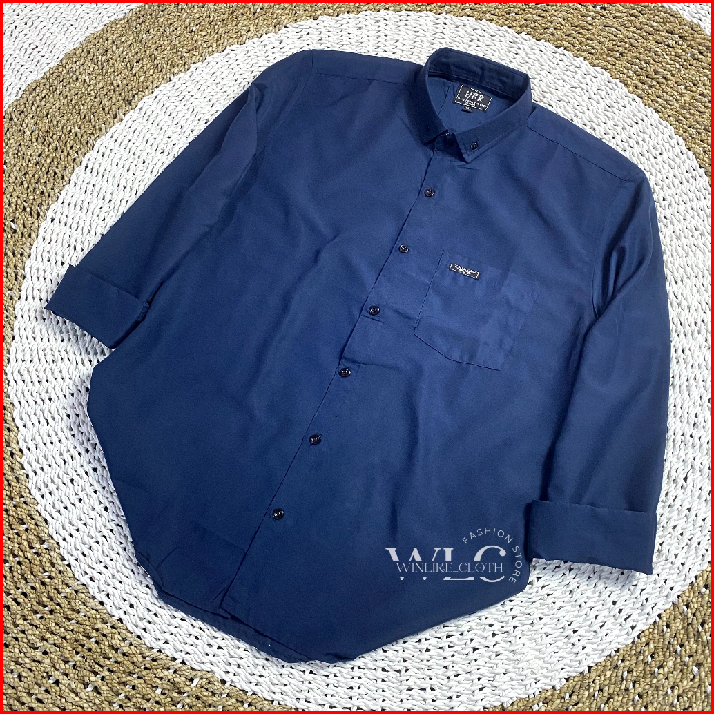 Kemeja Polos Pria Warna Biru Navy Panjang Casual Terbaru Size M L Xl Xxl