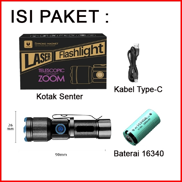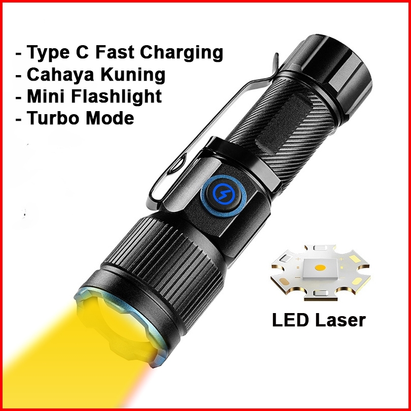 Senter Mini Led Coba F603 Led Laser Cahaya Kuning Magnet Type-c Hiking Camping