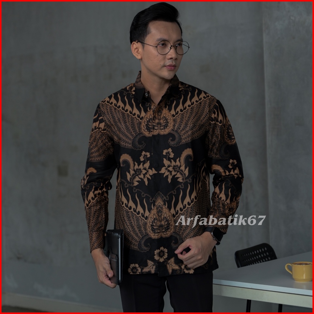 Batman Hitam Kemeja Batik Pria Lengan Panjang Katun Solo Lapis Furing Adem By Arfabatik67