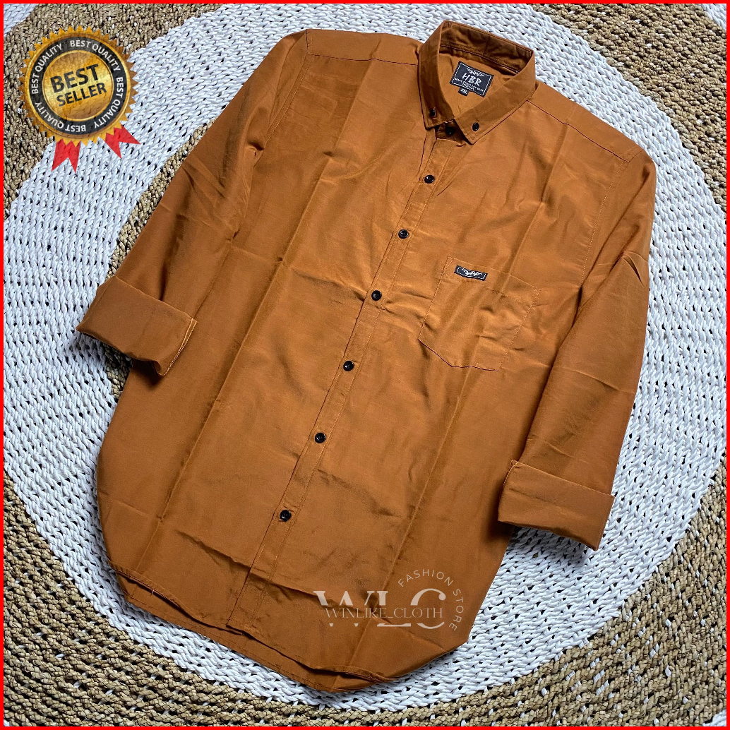 Kemeja Polos Lengan Panjang Premium Casual Termurah Slimfit Kantor Dewasa Terracotta Lokal Basic