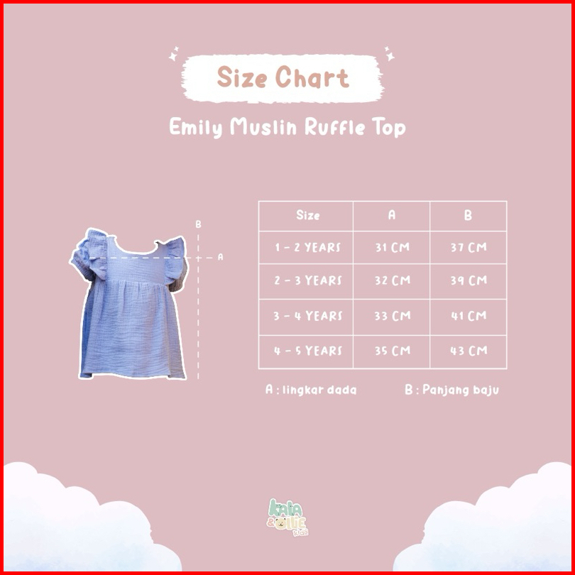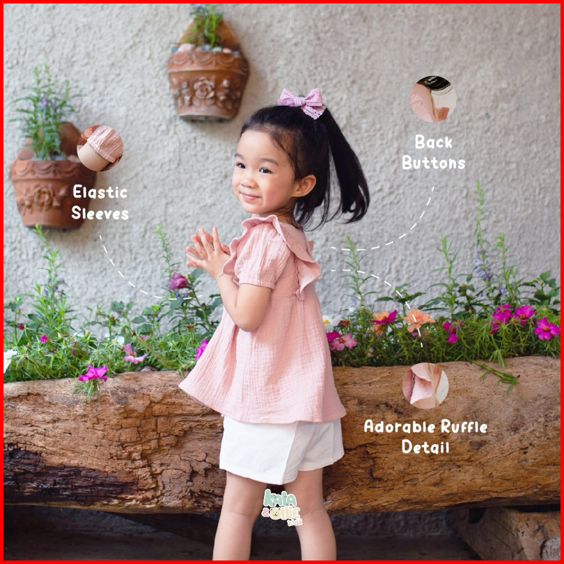 Kalaollie Emily Top Muslin Ruffle Top Atasan Muslin Balita Anak Perempuan