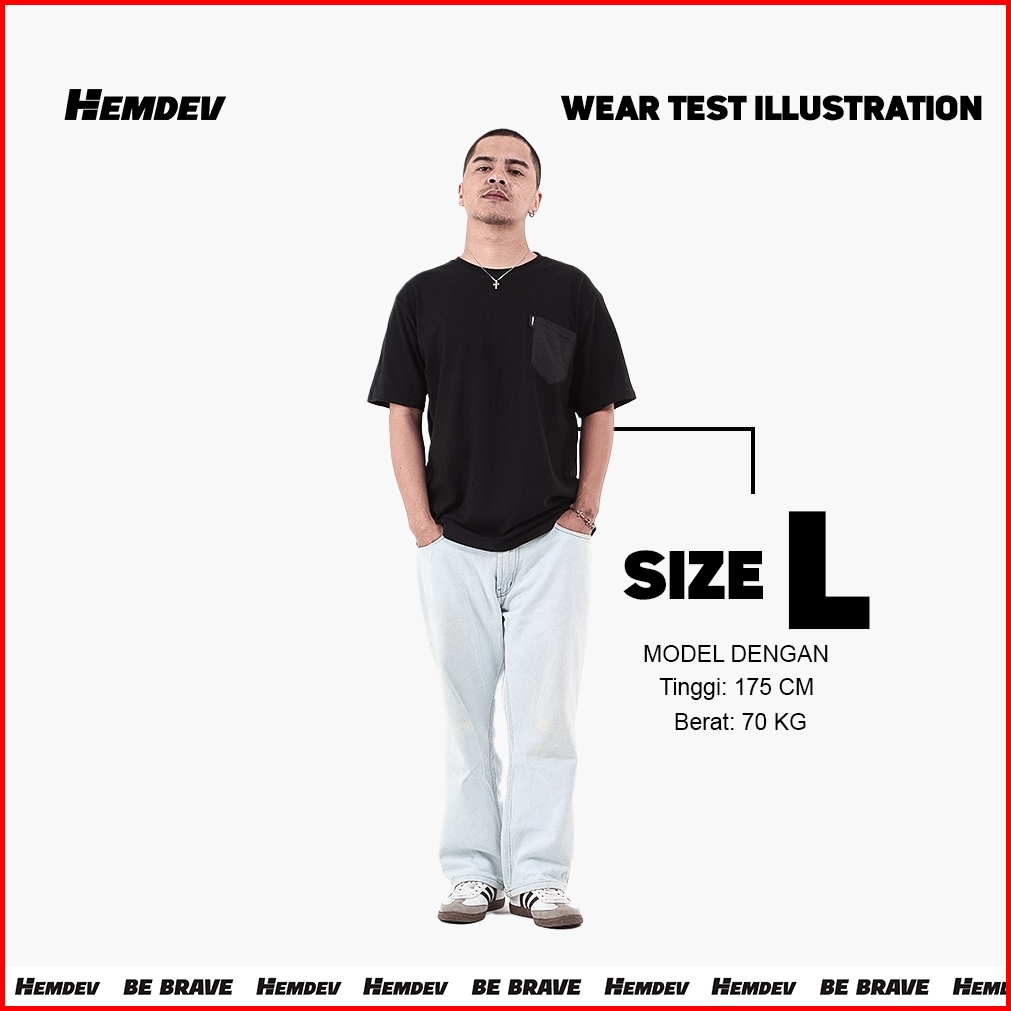 Hemdev Tshirt Pocket Worry Black Tees Katun