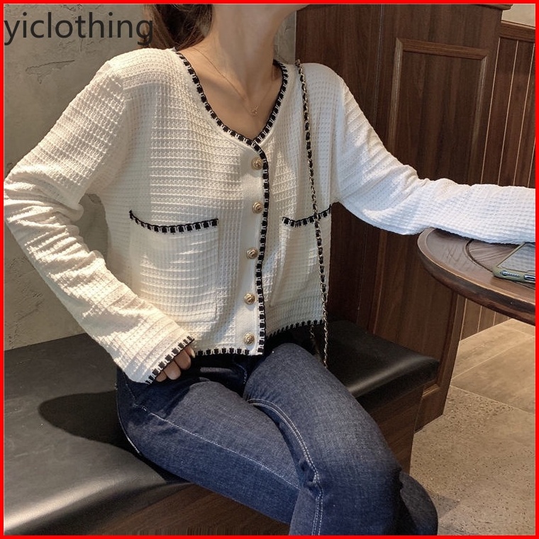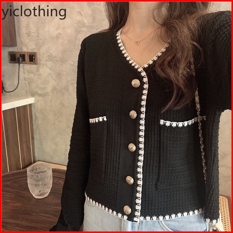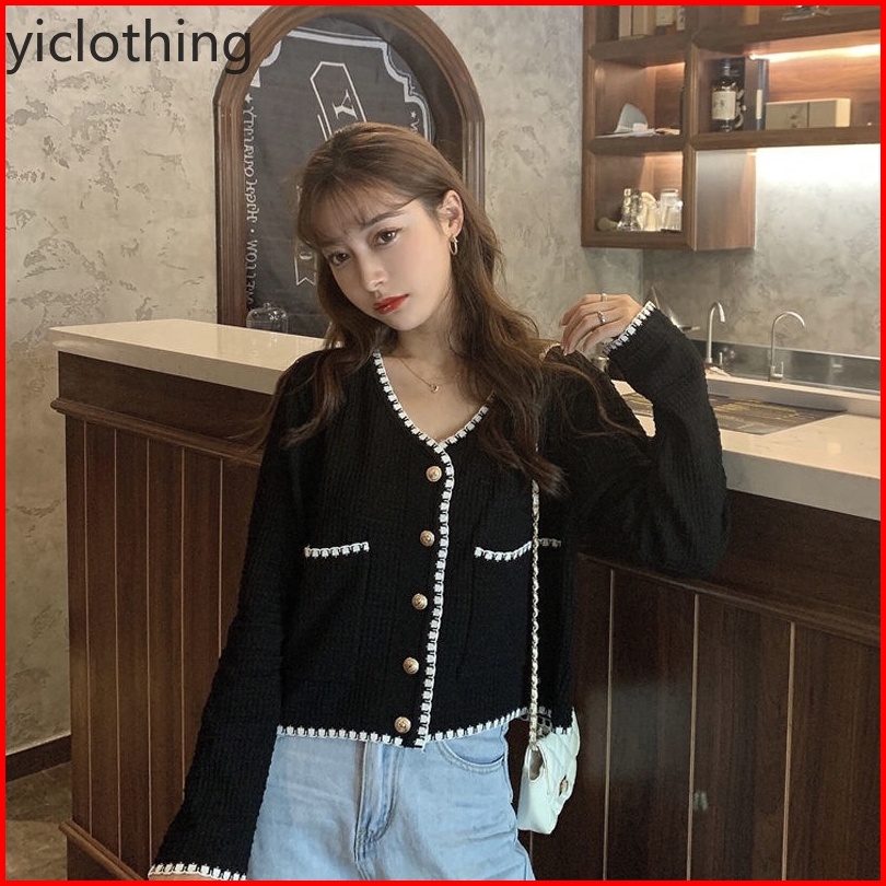 Kardigan Lengan Panjang Kancing V Gaya Korea Untuk Wanita Crop Top Outwear Jacket