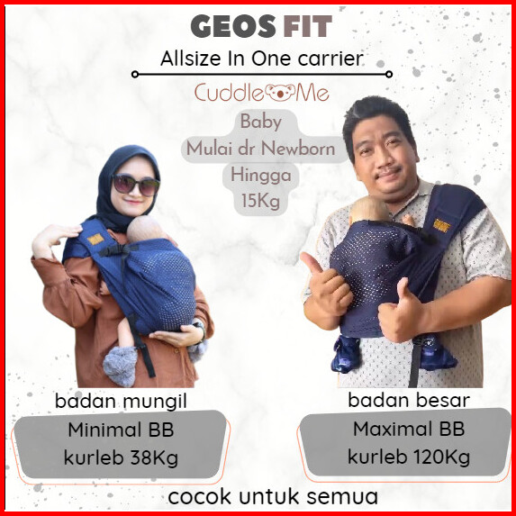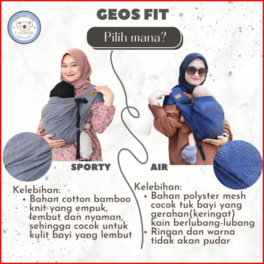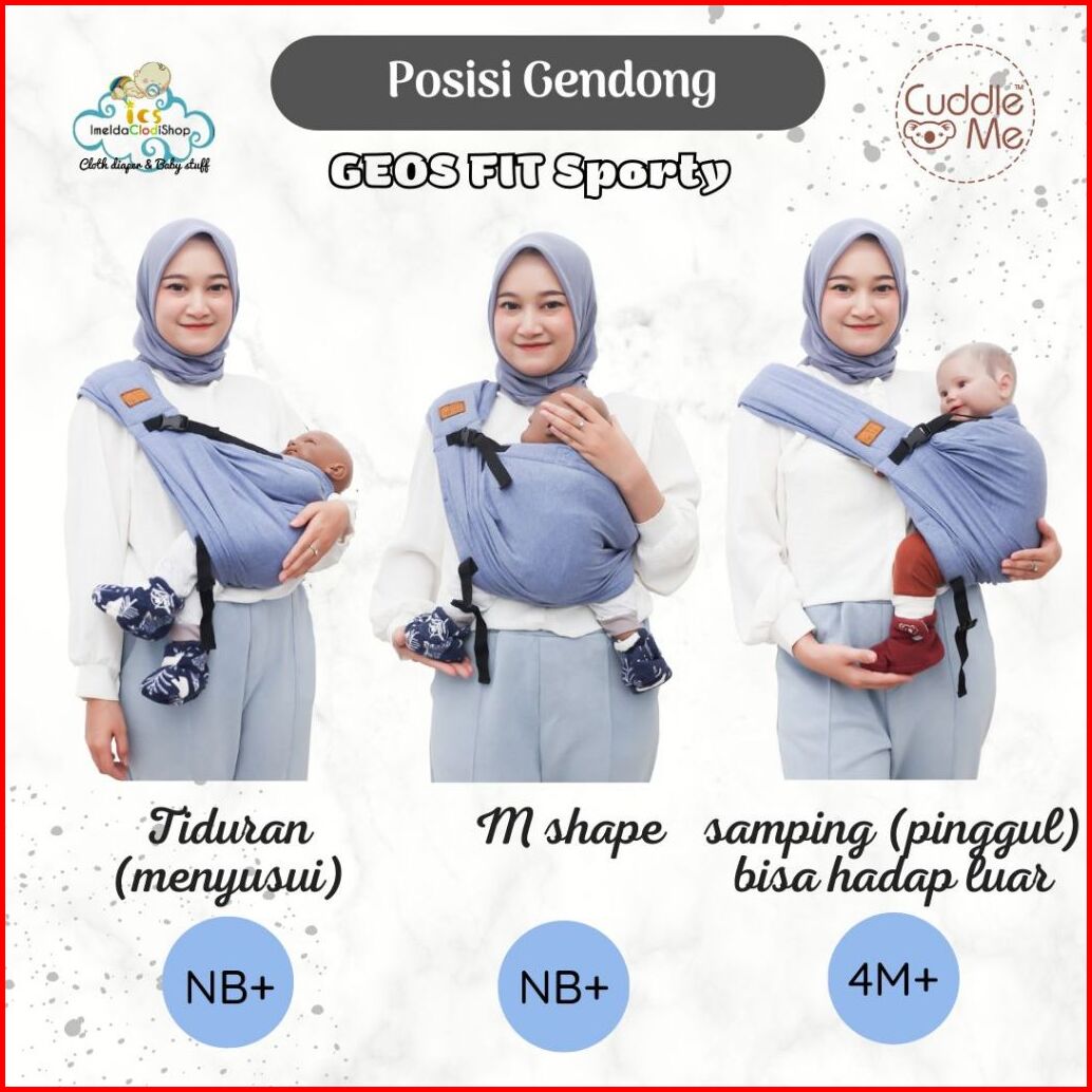 Cuddleme Geos Fit Air Sporty Spessa Polos Motif Gendongan Bayi M Shape Ringkes Praktis Sat Set