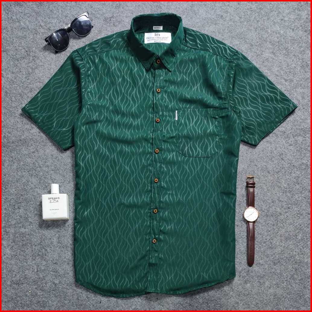 Detak Original Kemeja Embos Sultan Pria Lengan Pendek Hijau Botol Helix Casual Slimfit