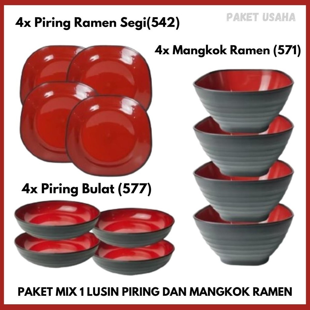 Paket 1 Lusin Ramen Piring Mix dan Mangkuk Kotak - Kitchenware Piring Set Mangkok