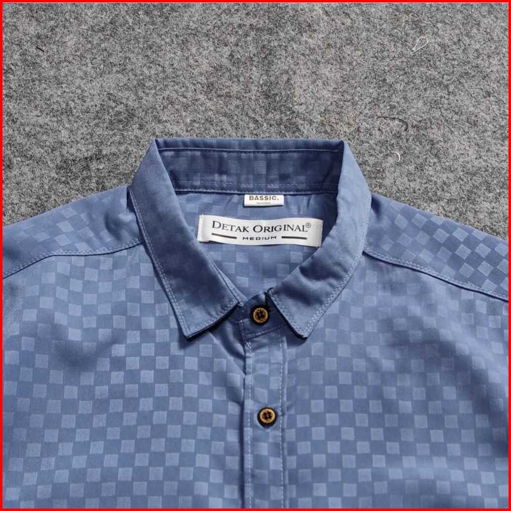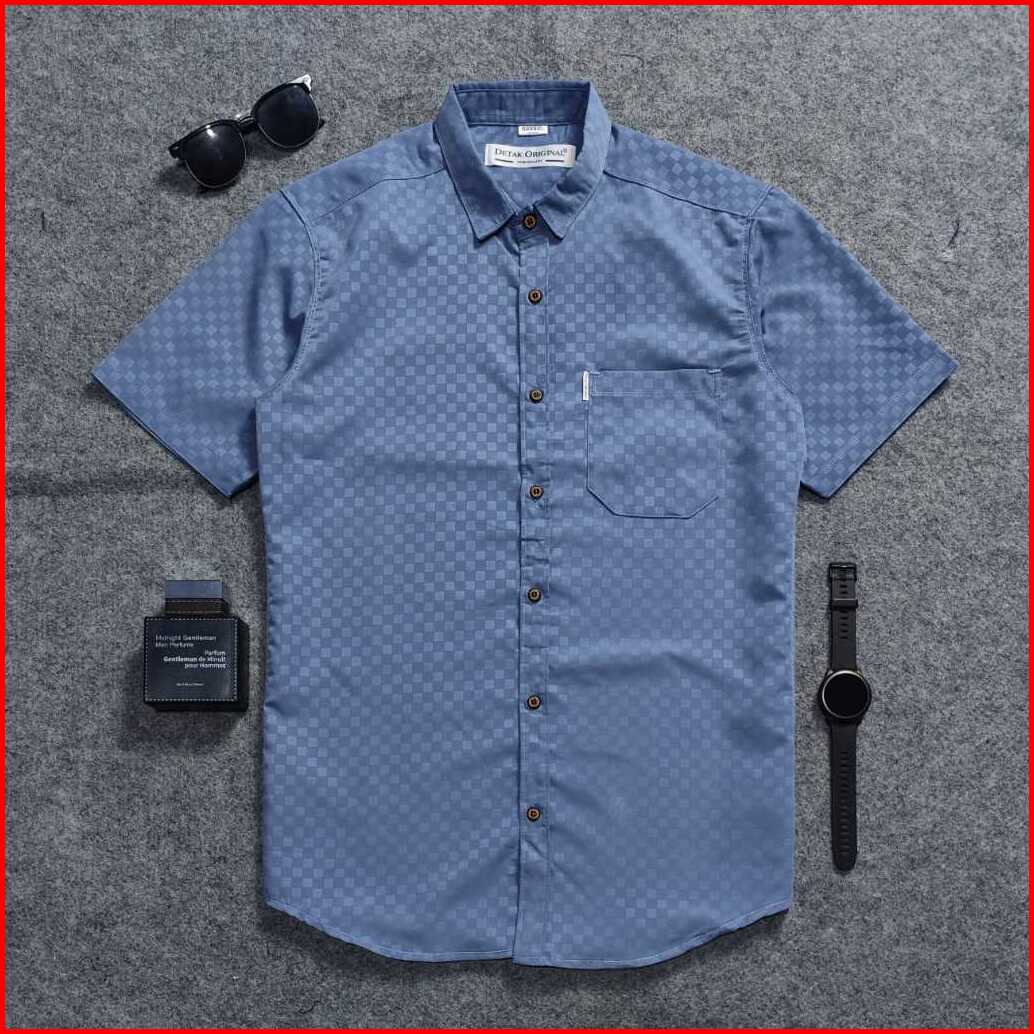 Detak Original Kemeja Embos Sultan Pria Lengan Pendek Denim Chessboard Casual Slimfit