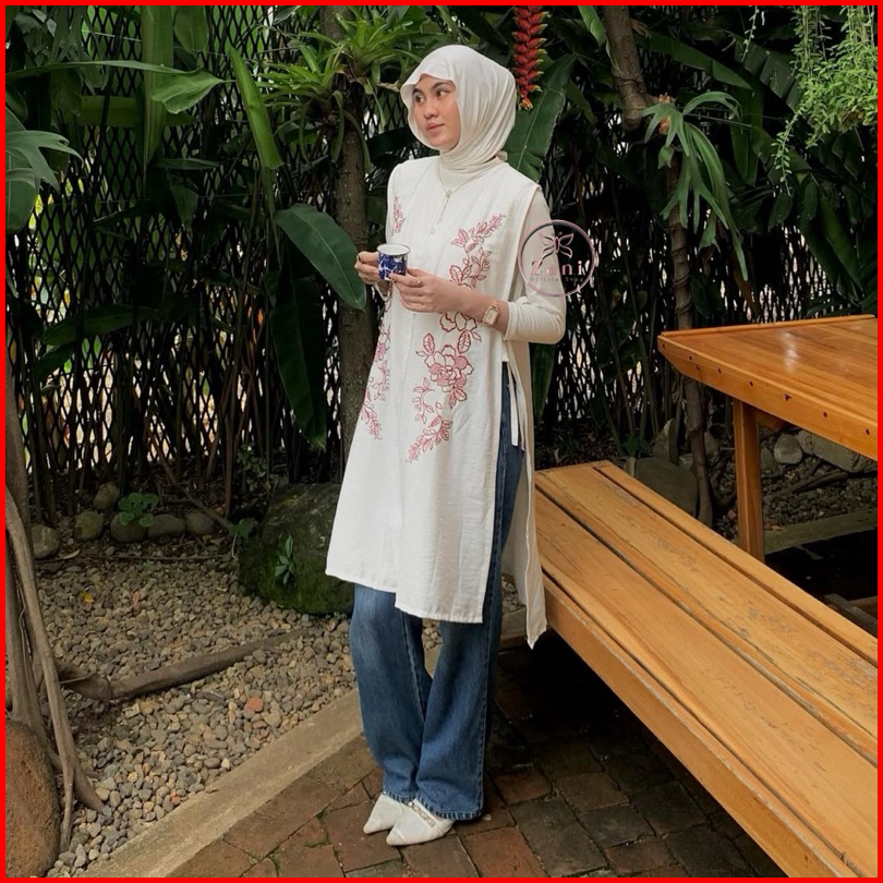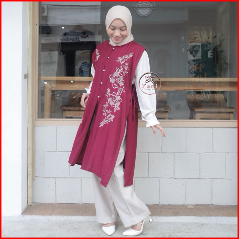Zani - Yurra Long Vest- Outer Bordir Bunga - Vest Outer - Vest Wanita - Outer Bordir Premium - Atasan Wanita Bordir - Ve