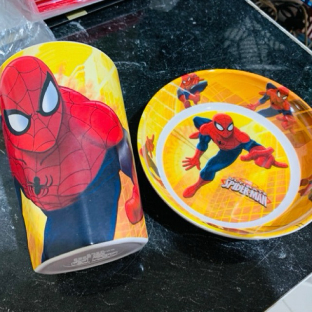 paket 2in1 MANGKOK melamin set piring gelas set karakter cowok cowo spidermen spiderman