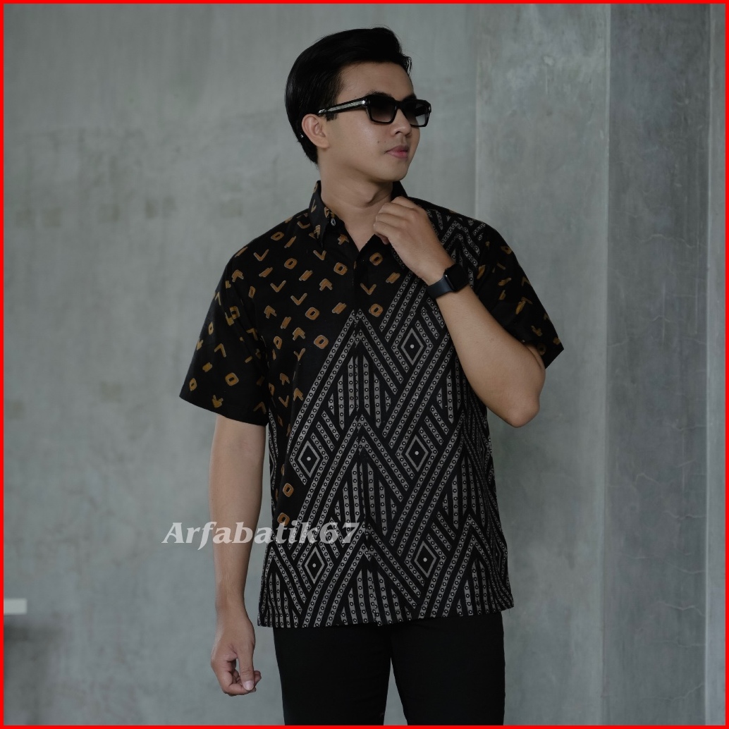 Piramit Hitam Baju Batik Pria Tangan Pendek Katun Prima Premium Lapis Furing Hero Ready Seragaman By Arfabatik67