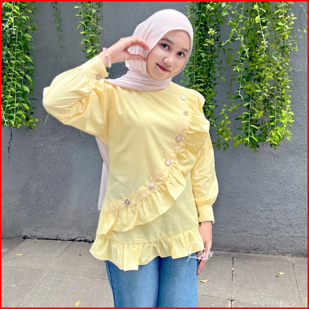 Lili Blouse Atasan Katun Kekinian Lengan Panjang Kemeja Kerja Wanita