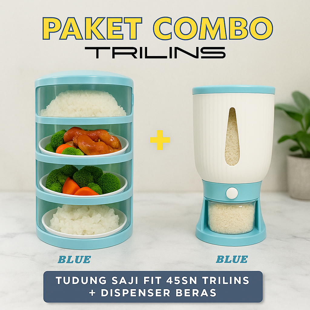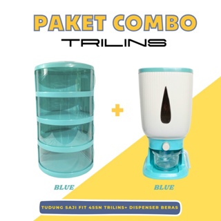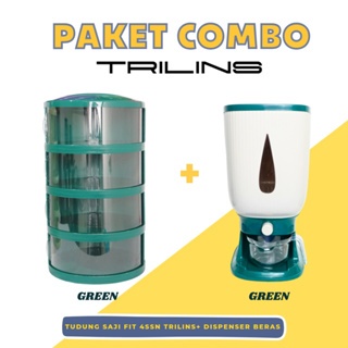 PAKET COMBO FIT Tudung Saji FIT 4 Susun Lebih Tebal Food Grade + Dispenser Beras Penyimpanan Beras