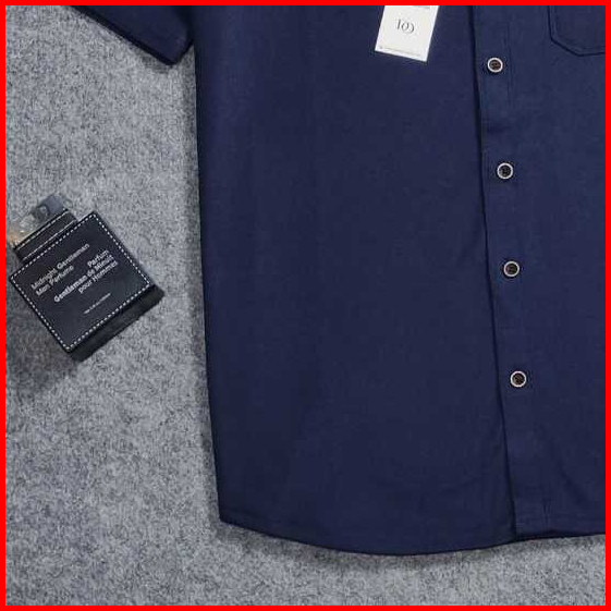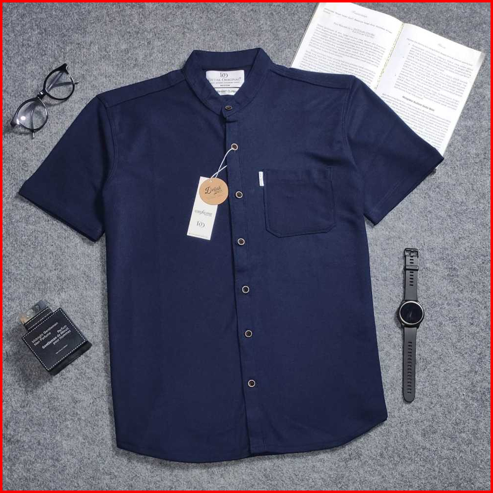 Detak Original Shanghai Kemeja Polos Pria Lengan Pendek Kerah Sanghai Biru Navy