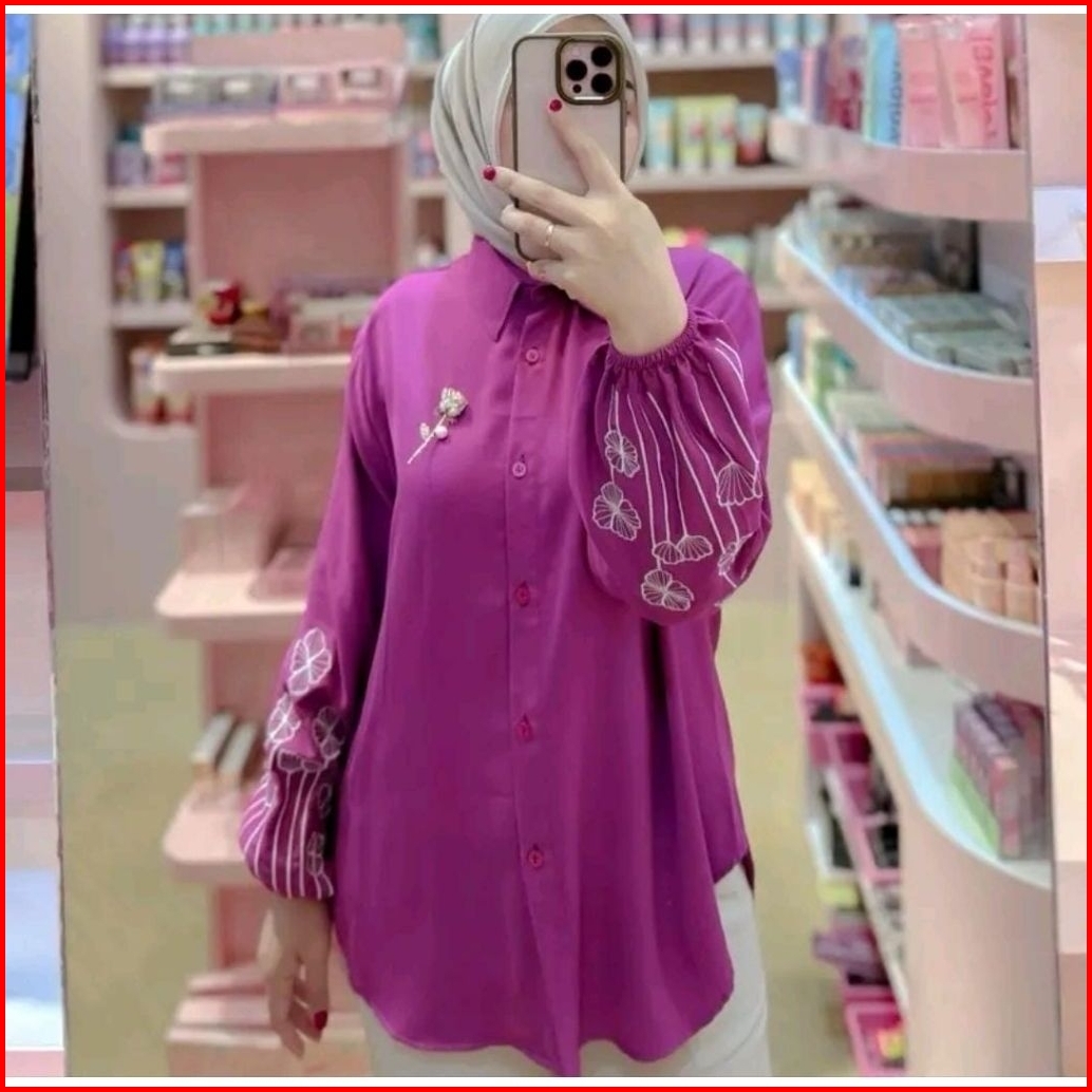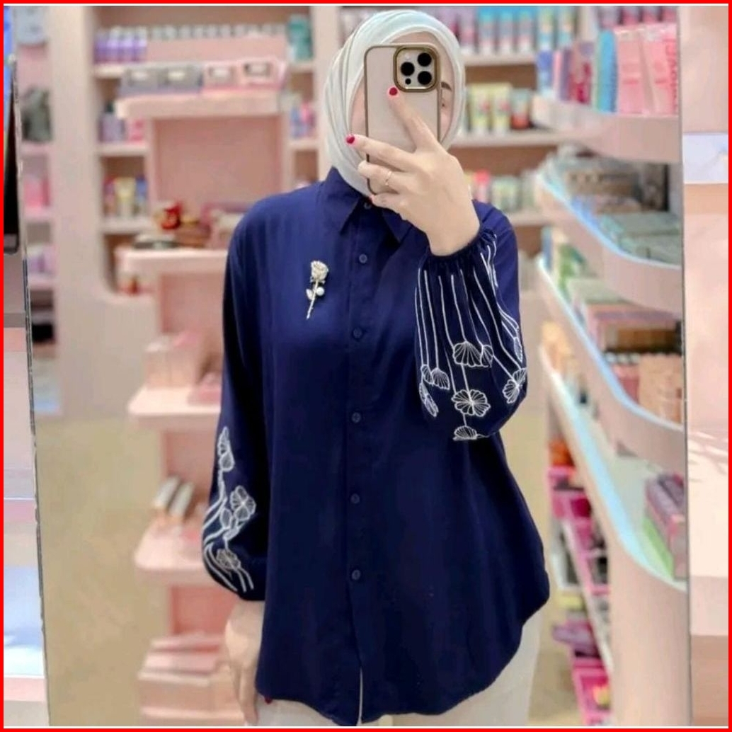 Atasan Wanita Blouse Livia L Kemeja Bordir Motif Bunga-bunga