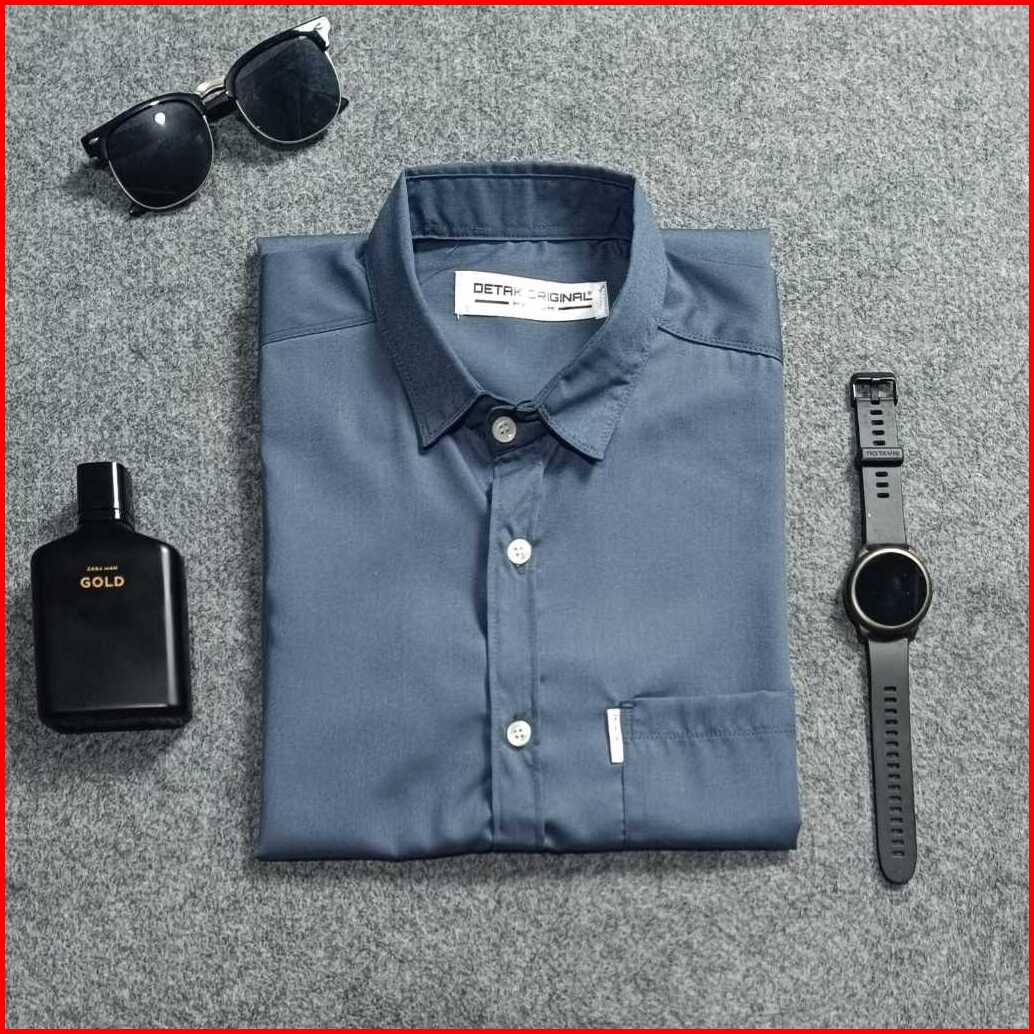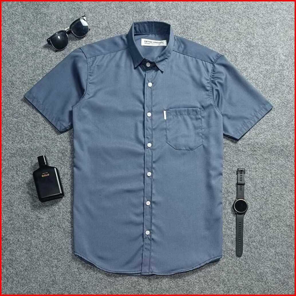 Detak Original Kemeja Polos Twill Premium Pria Lengan Pendek Light Ash Slim-fit