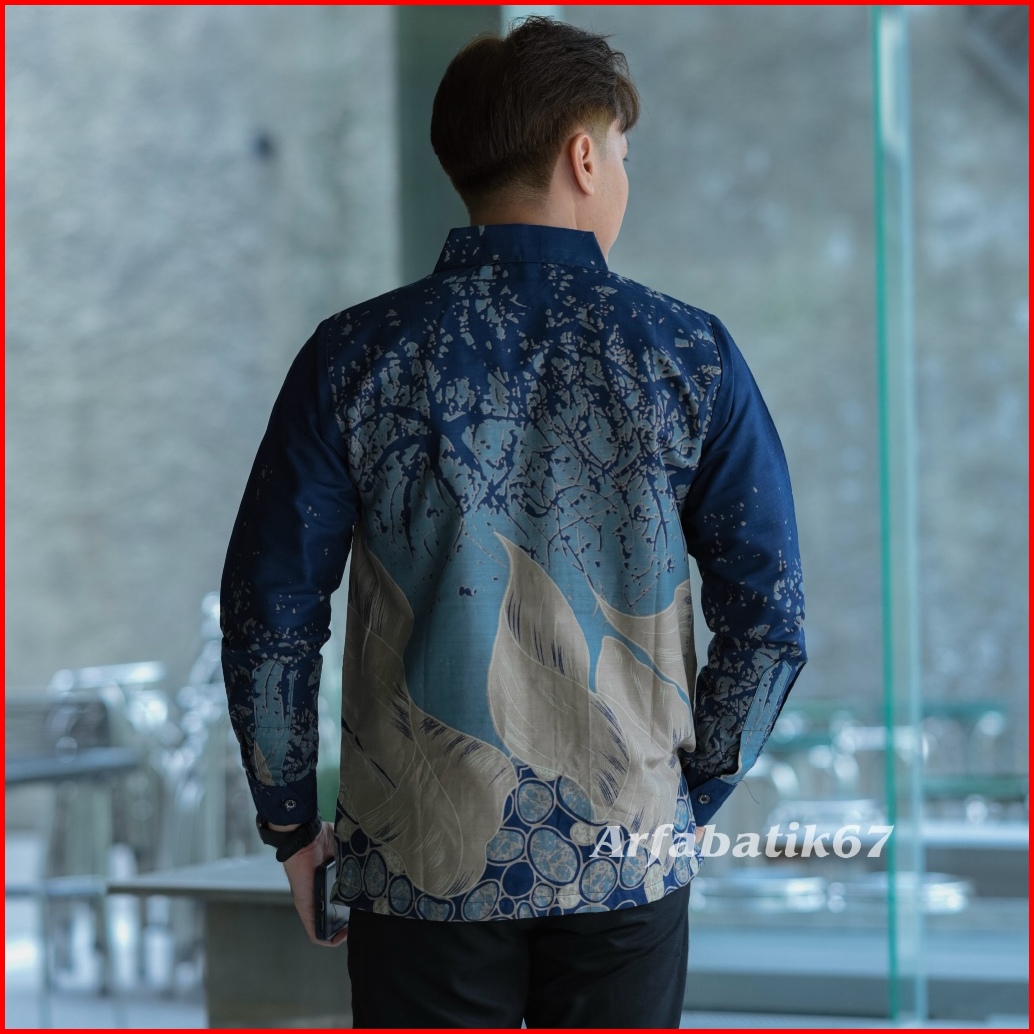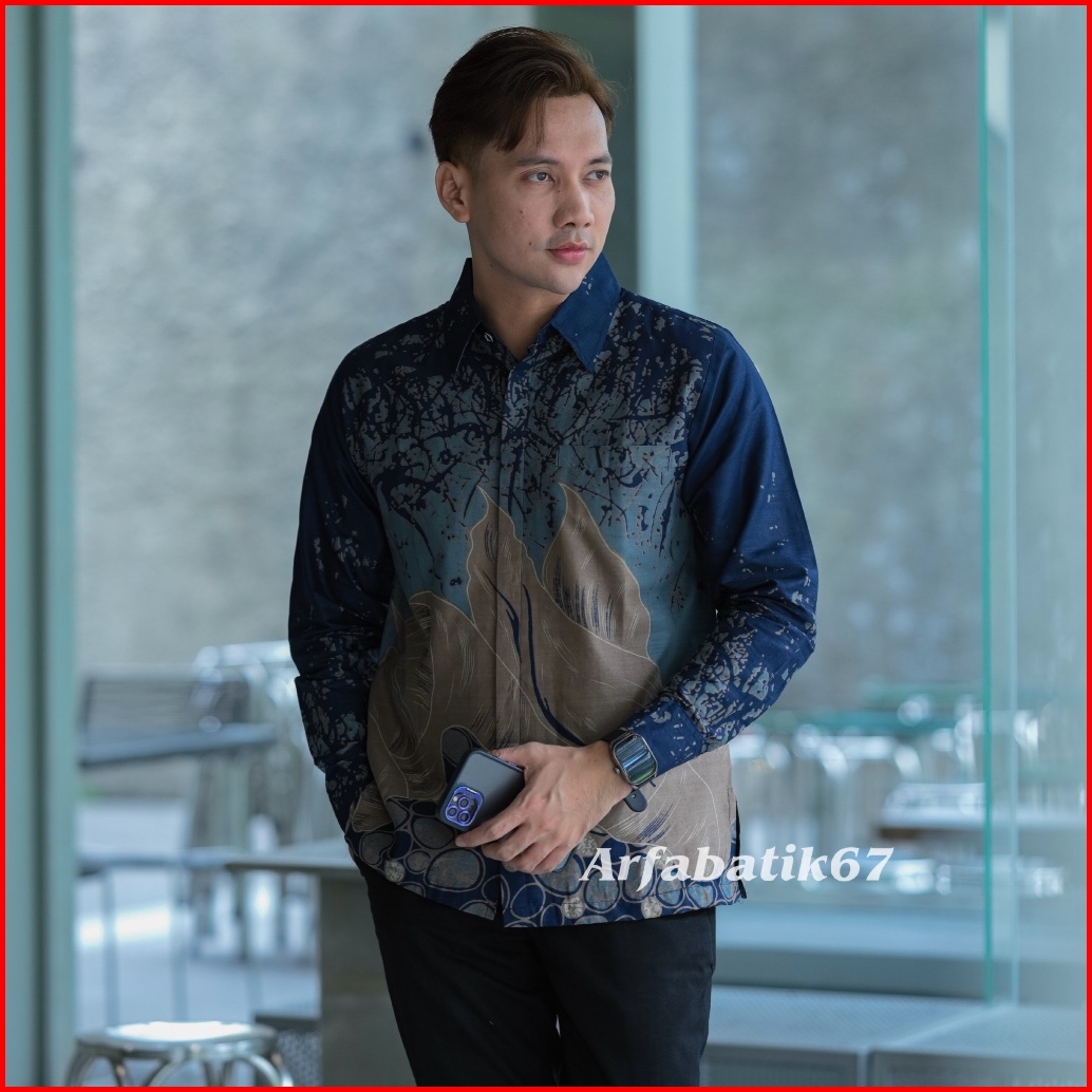 Rakabumi Nevy Denim Kemeja Batik Pria Lengan Panjang Katun Solo Lapis Furing Hero Ready Sergaman By Arfabatik67
