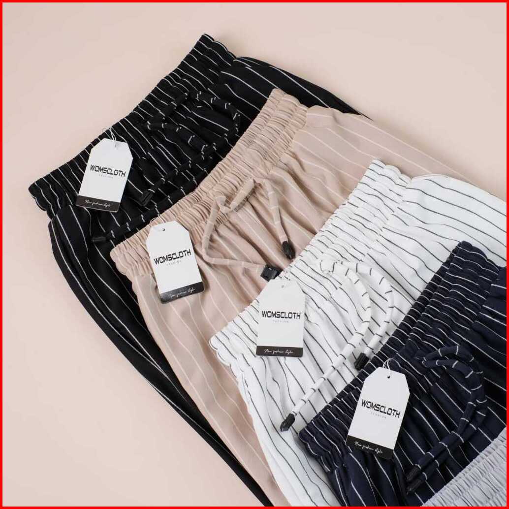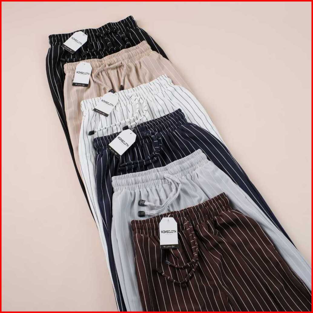 Womscloth - Everyday Pants - Stripe Pants Bangkok - Celana Panjang Wanita Baggy Kantor Kuliah Motif Garis Kulot Pinstrip