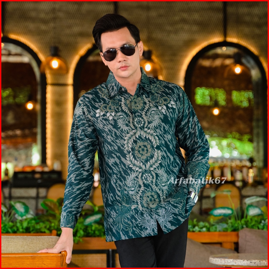 Kaesang Hijau Emerald Tua Kemeja Batik Pria Lengan Panjang Katun Prima Premium Lapis Furing Hero By Arfabatik67