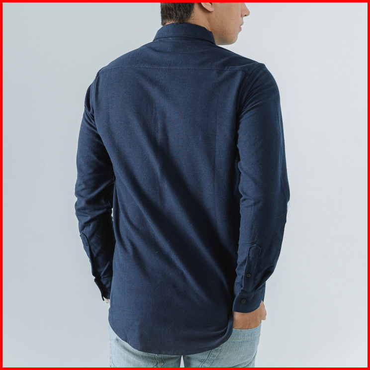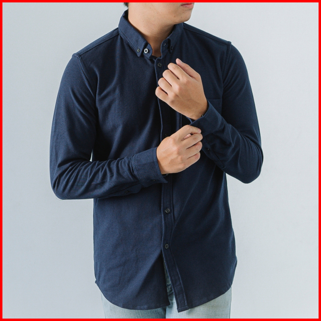 Loku Shirt Pique Longslevee Kemeja Pria Lengan Panjang Katun Pique Navy