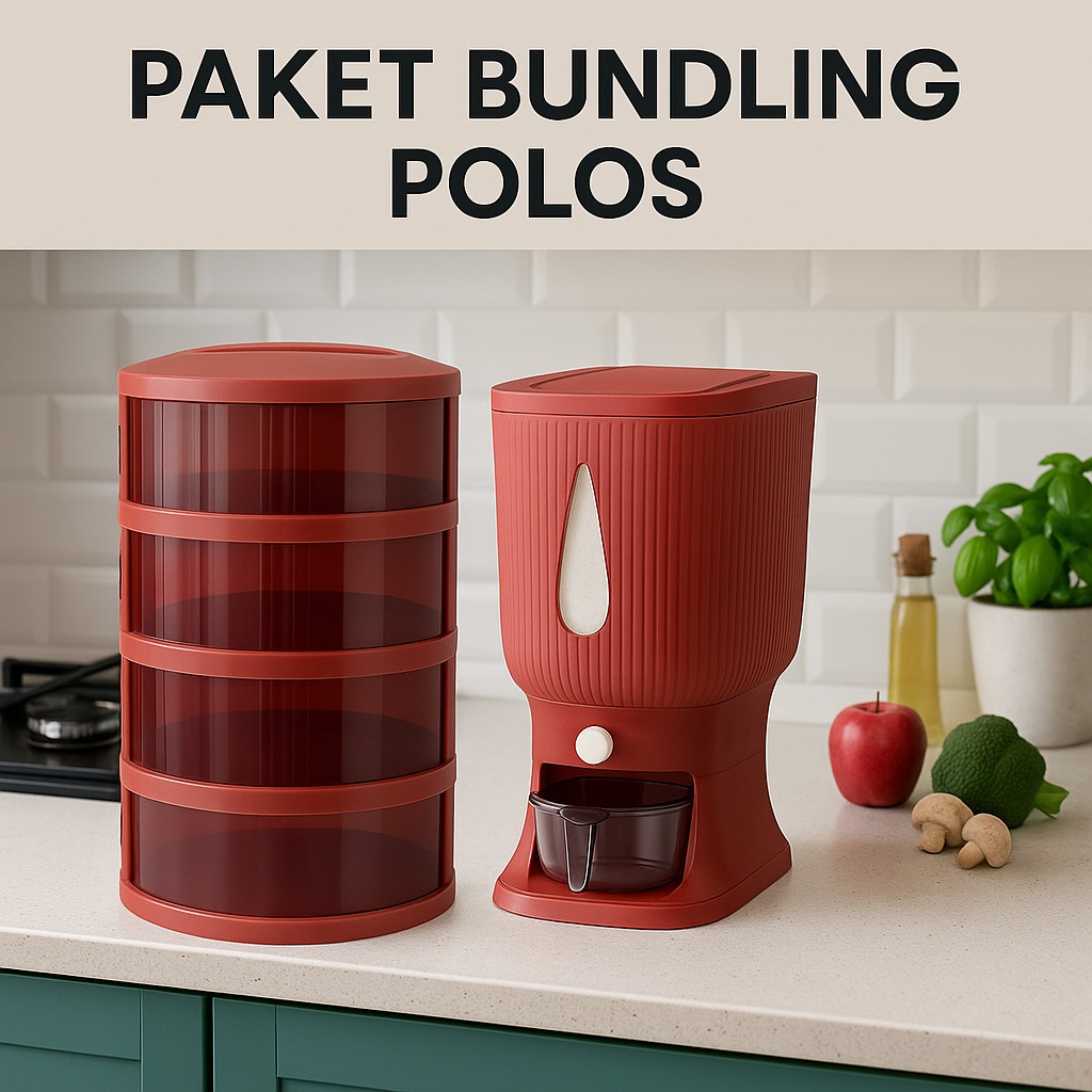 PAKET HAMPERS COMBO FIT Dispenser Beras 10 KG + Tudung Saji FIT 4 Susun Tempat Penyimpanan Makanan