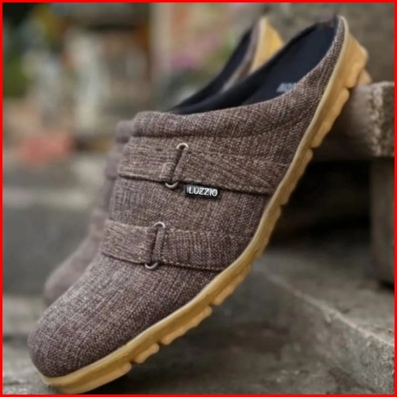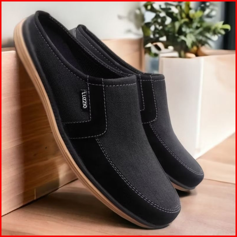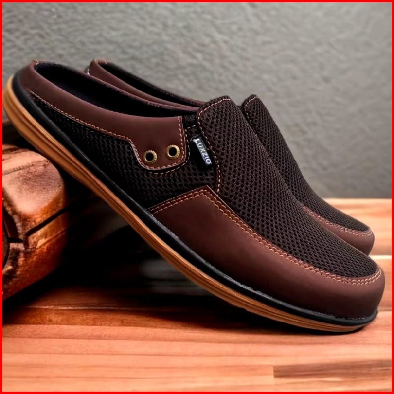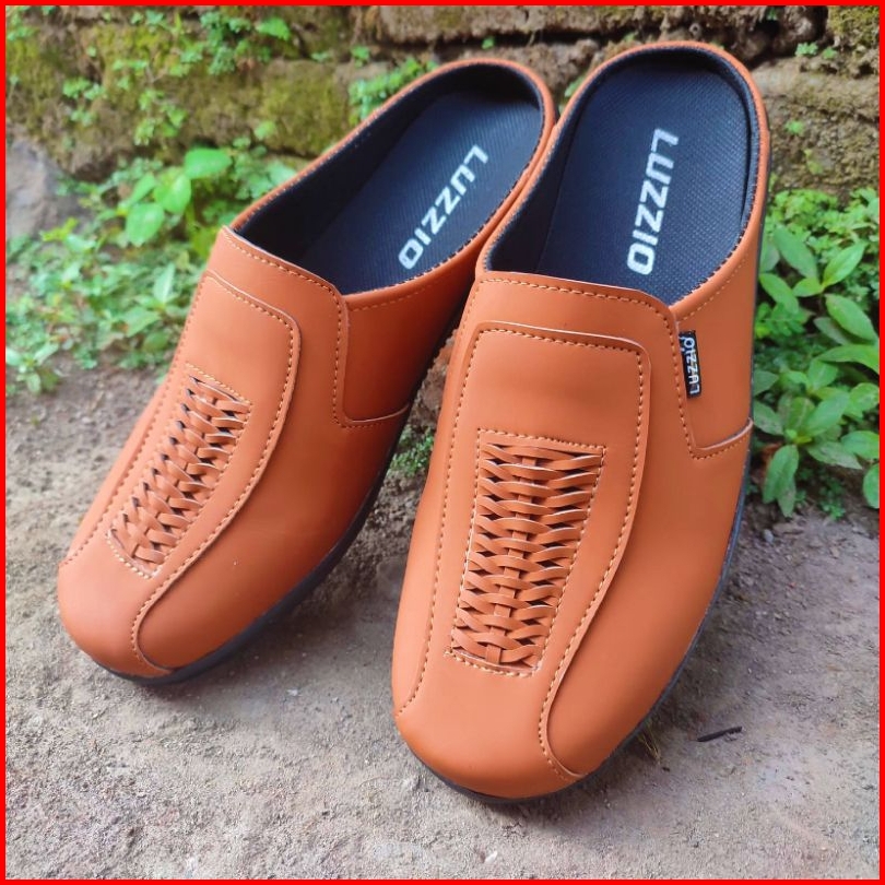 Bustong Slop Selop Sepatu Sandal Kulit Pria Slip On Kasual Sintetis Kerja Kantoran Formal Sol Karet