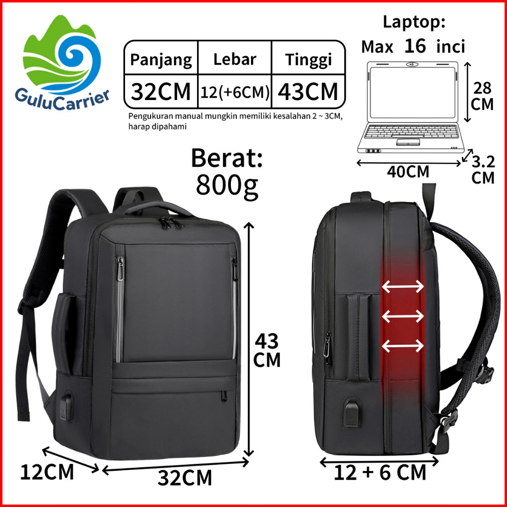 Gulucarrier Tas Ransel Laptop 16 Inch Usb Port Anti Air Backpack Travel Pria Wanita Kapasitas Besar