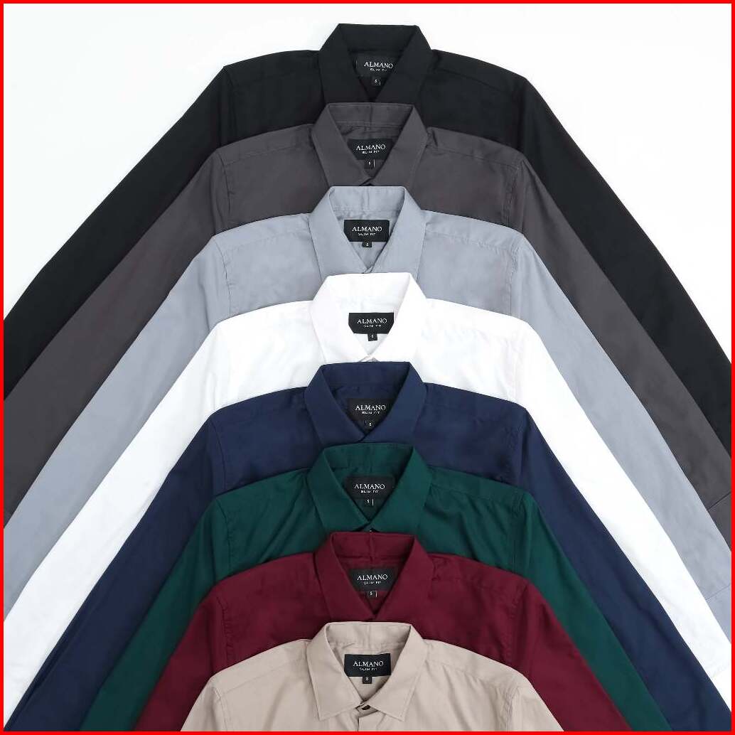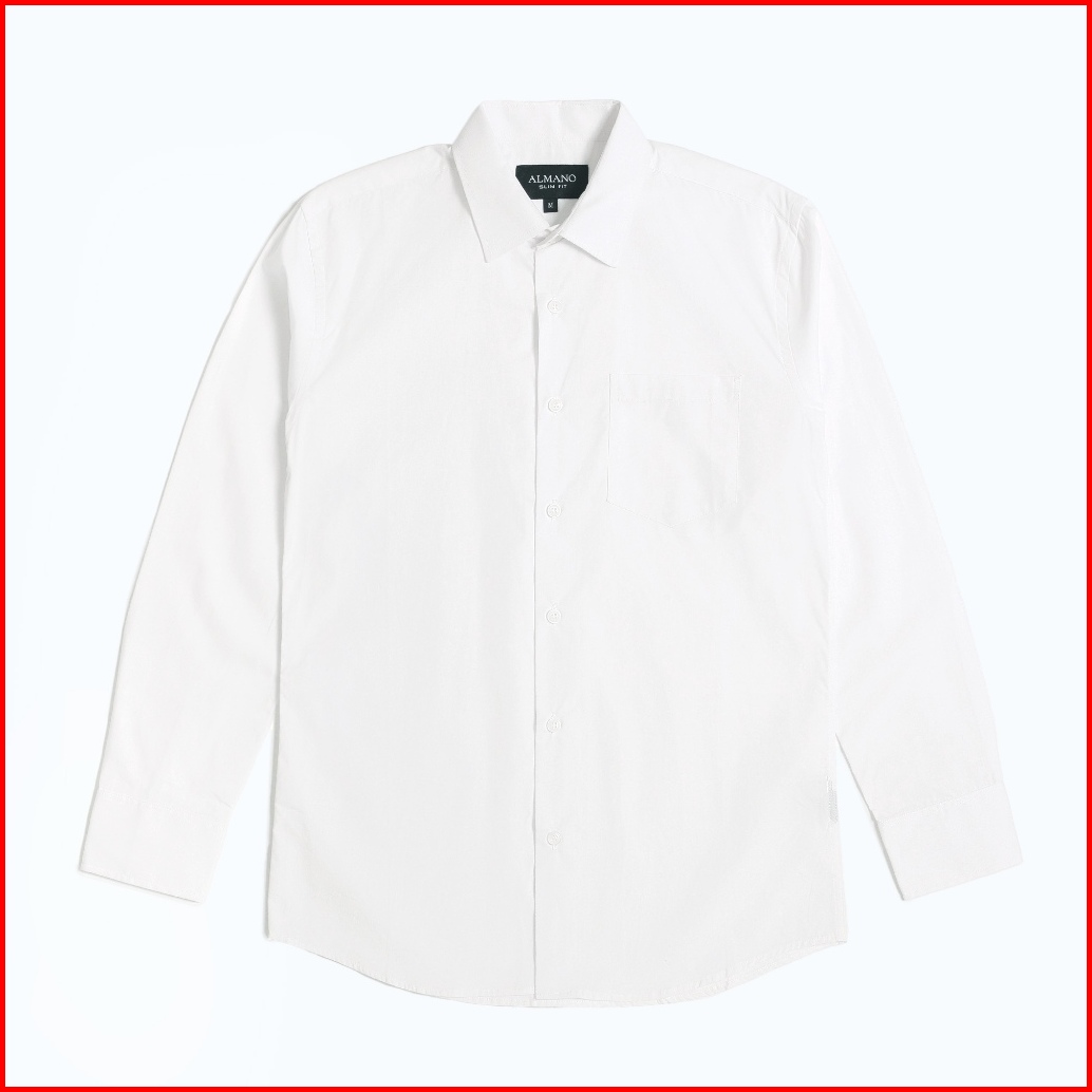 Almano Devin Shirt Ls White Kemeja Pria Slim Fit Polos Panjang Katun Putih