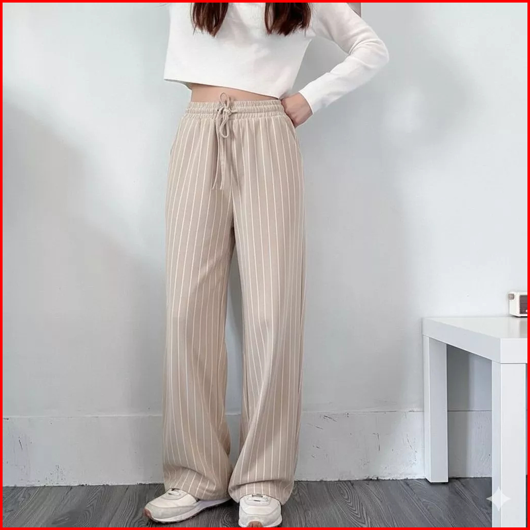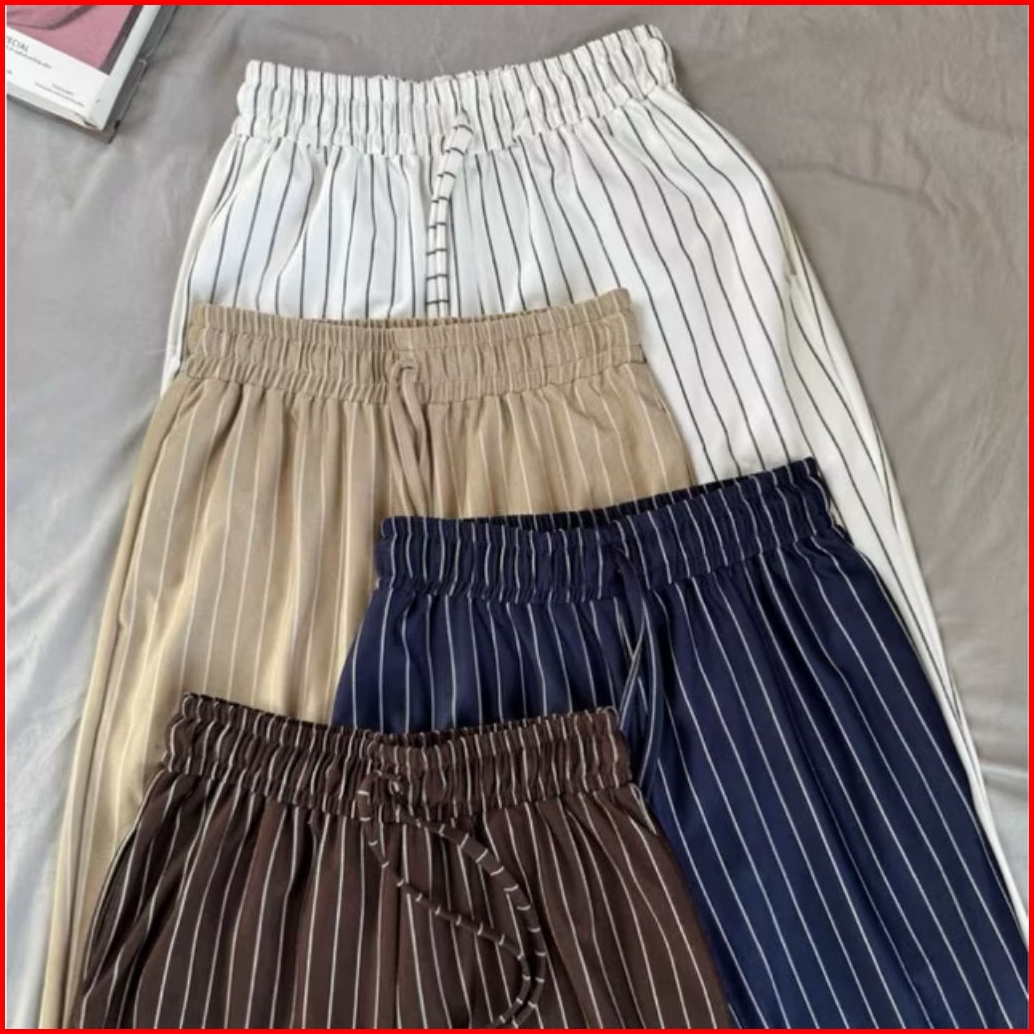 Everyday Pants Celana Kulot Wanita Panjang Motif Garis Highwaist Baggy Pants Kantor Kuliah Knit Bangkok
