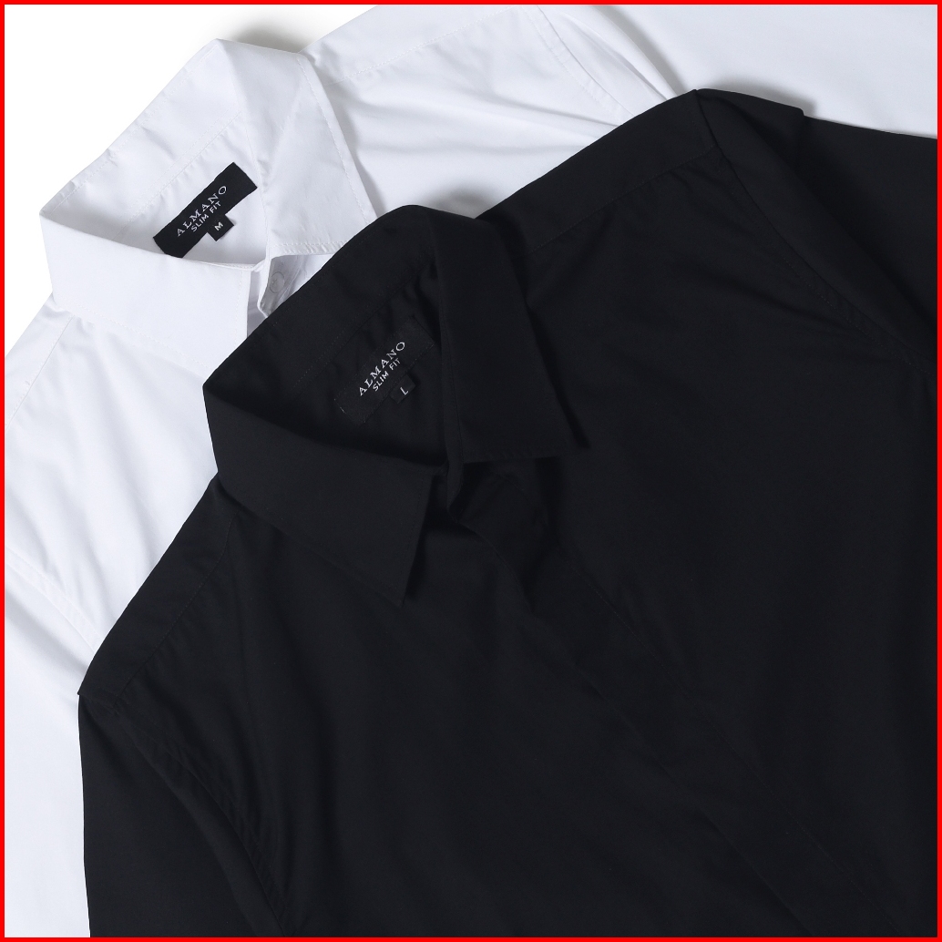 Almano Clean Look Shirt Ls White Kemeja Pria Slim Fit Polos Panjang Katun Putih