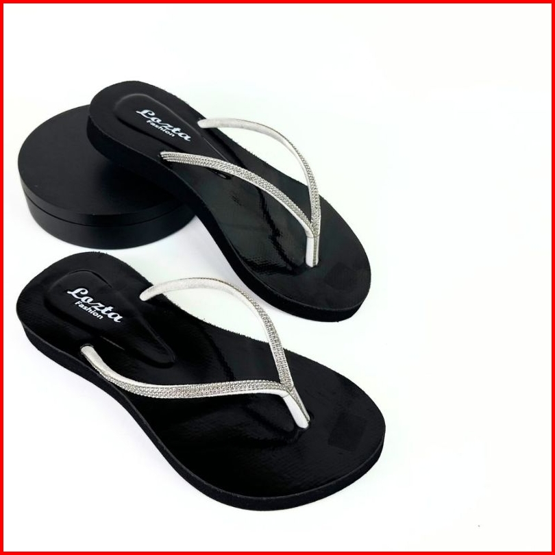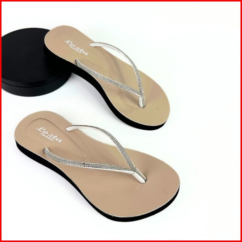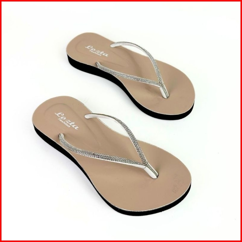 Lozta Sendal Wanita Jepit Platform Diamont Putih