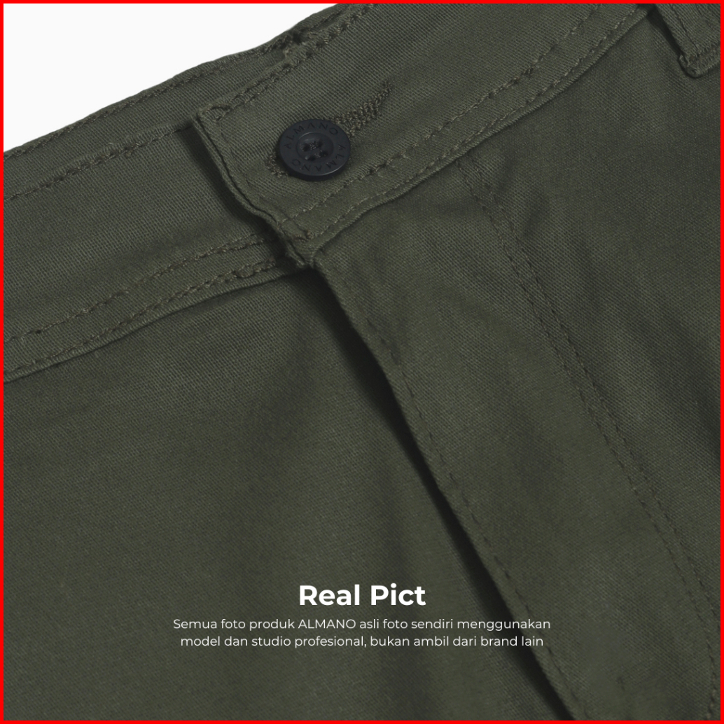 Almano Essential Chino Pants Stretch Olive Celana Panjang Chinos Pria Slim Fit Hijau Army