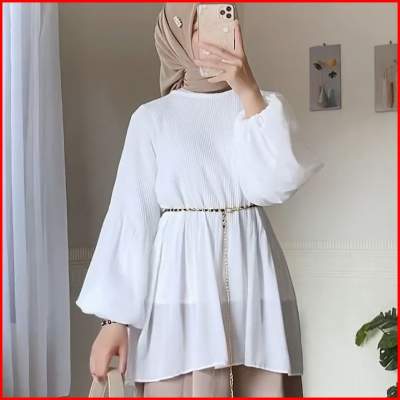 Kayra Blouse Plisket Lengan Balon Ceruty Babydoll