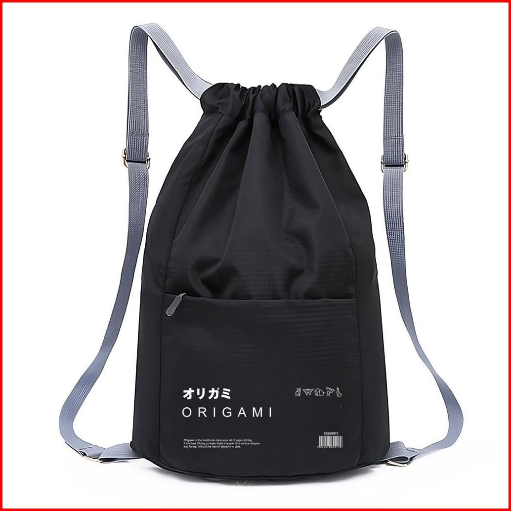 Fitras - Tas Ransel Pria Simple Font Origami Jepang String Bag Waterproff Warna Hitam
